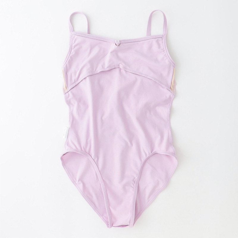 胸切り替えにギャザーを寄せたシンプルなフロントデザインのキャミソールレオタード