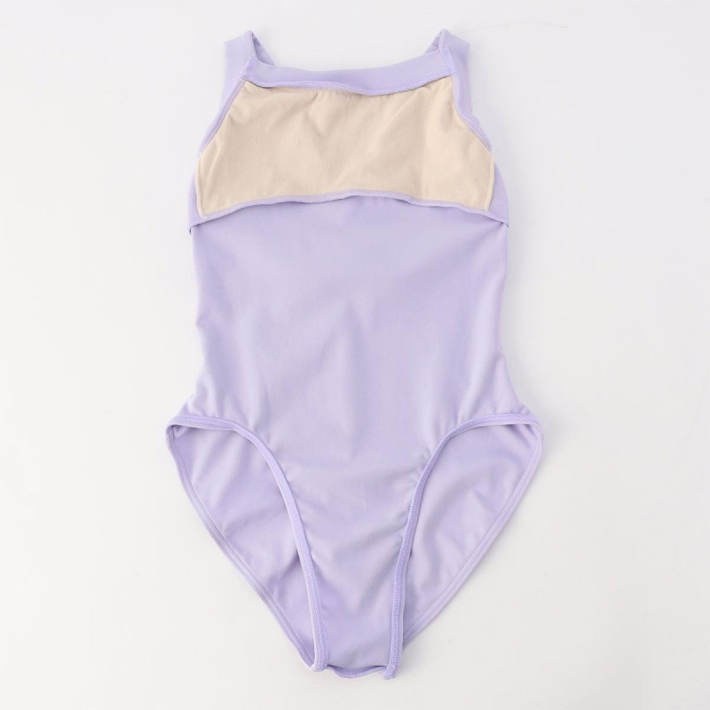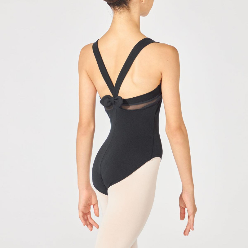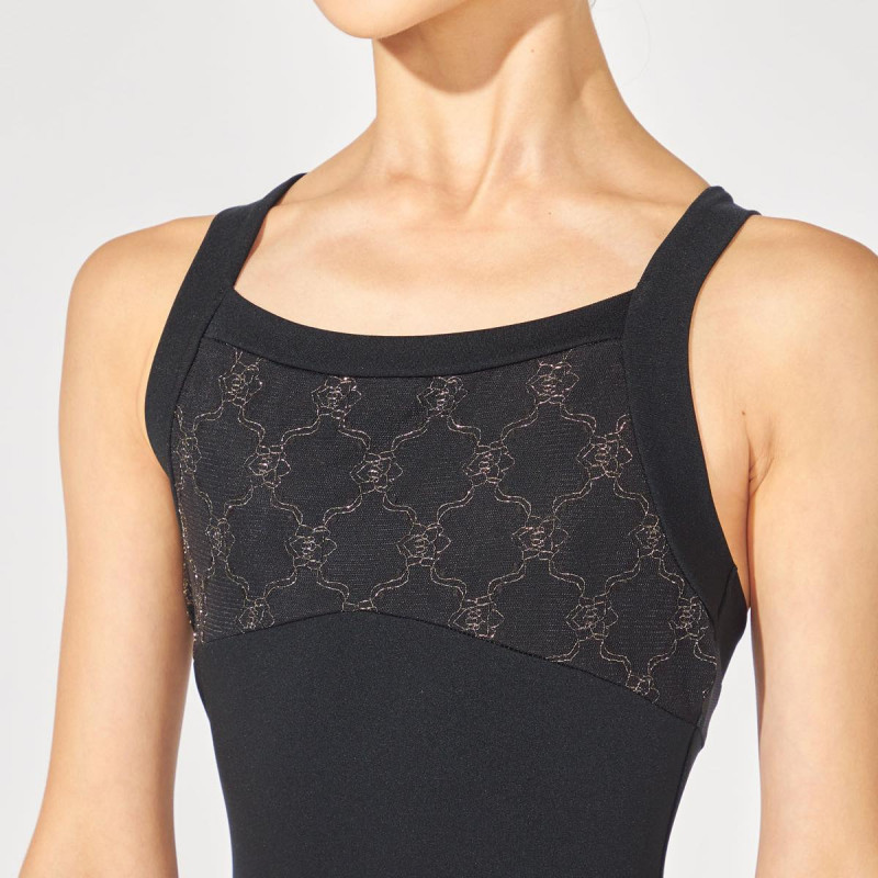 ソフトスムースとキラキラと輝くゴールドの刺しゅう糸が美しいオーナメントチュール使いのキャミソールレオタード