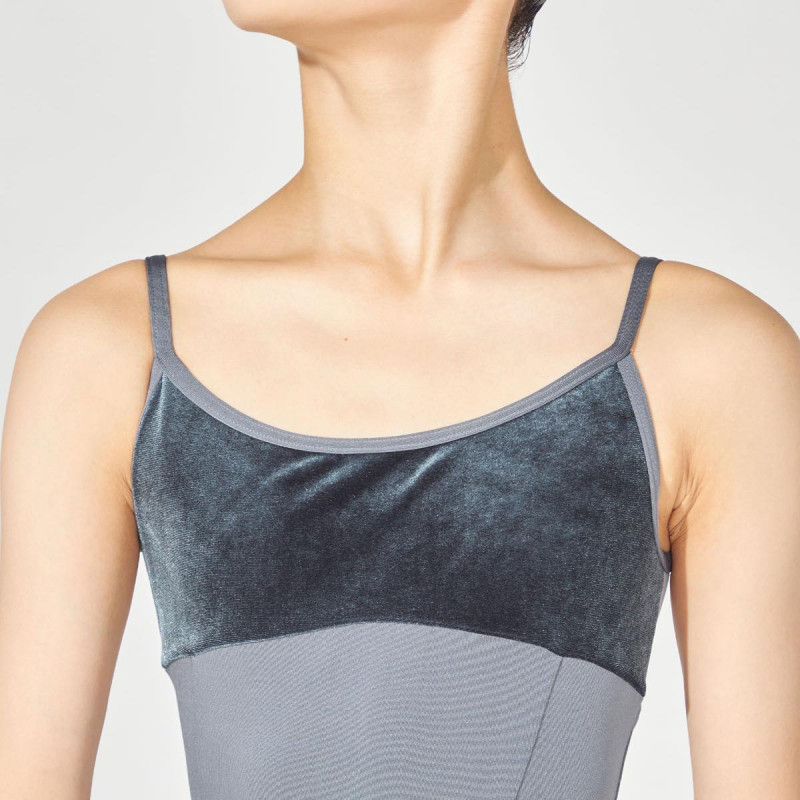 足が長く見えスタイルアップ効果のあるハイレグカットのキャミソールレオタード