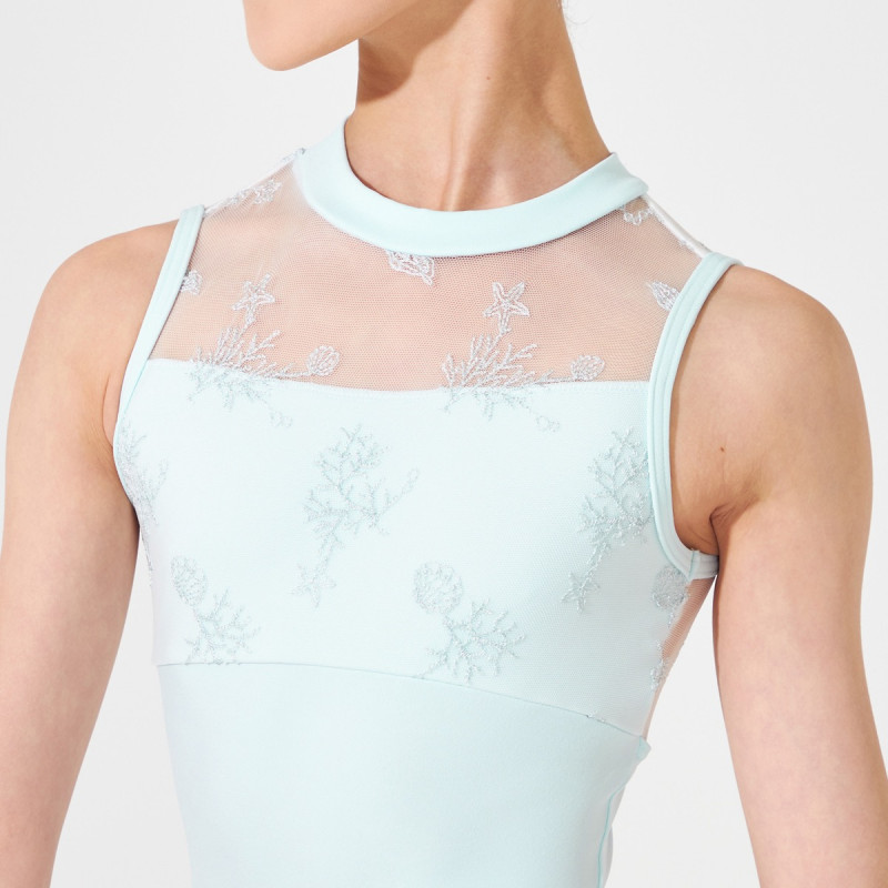 海のかわいい生き物たちをさりげなく刺しゅうで施したレースをたっぷりと使用した透け感が涼しげなデザイン。