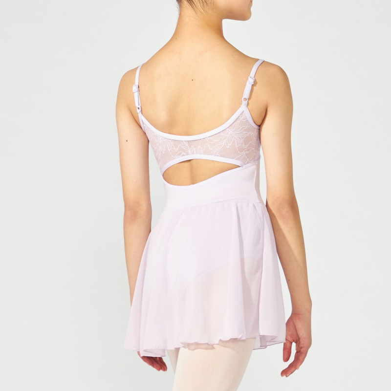 デザイン性のある背中の開きが大人っぽいスカート付レオタード
