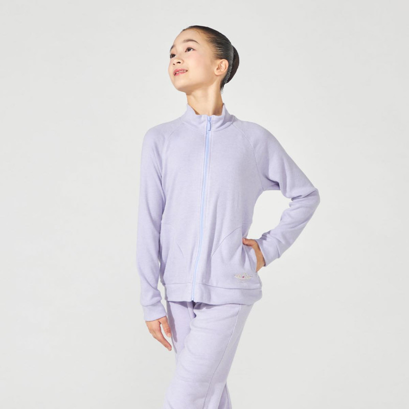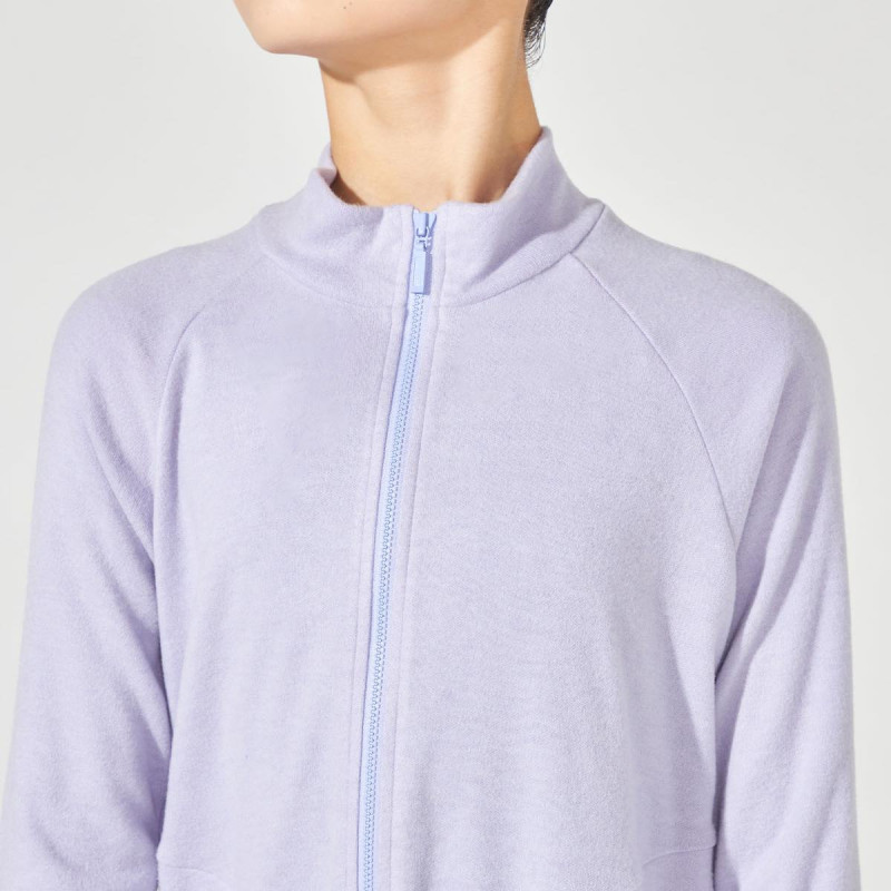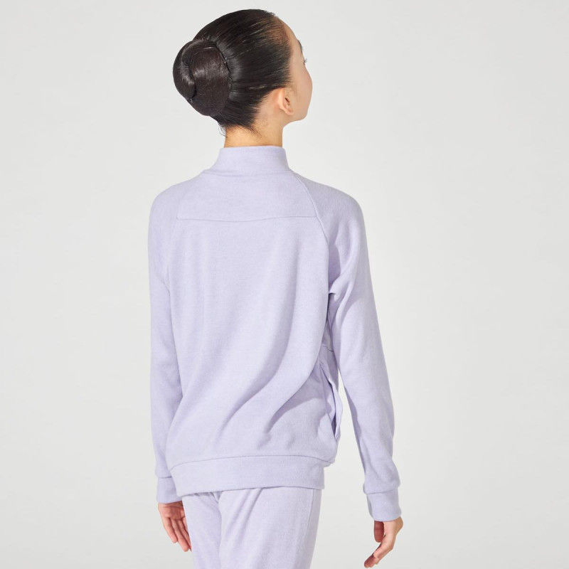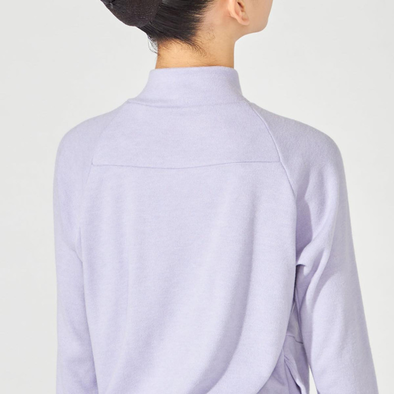首元までしっかりとカバーするハイネックタイプのウォームアップジャケット