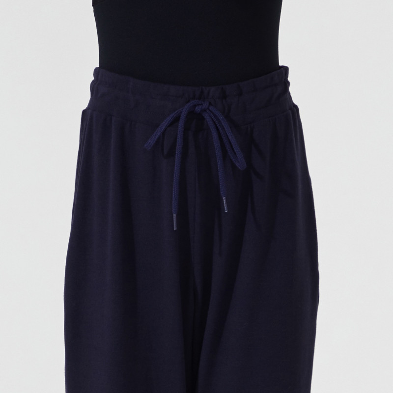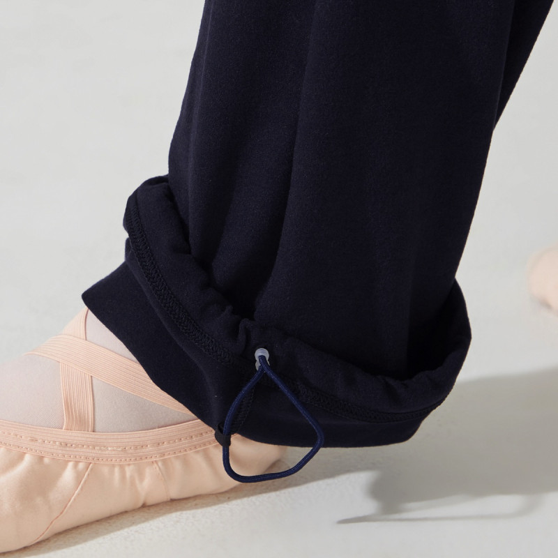 ウエストに引き紐付きでサイズ調整が可能なウォームアップパンツ