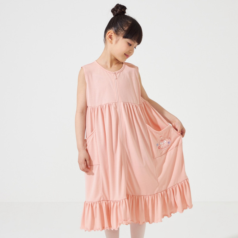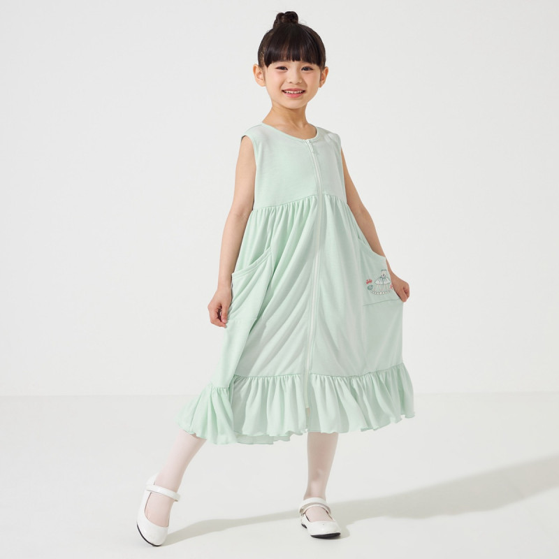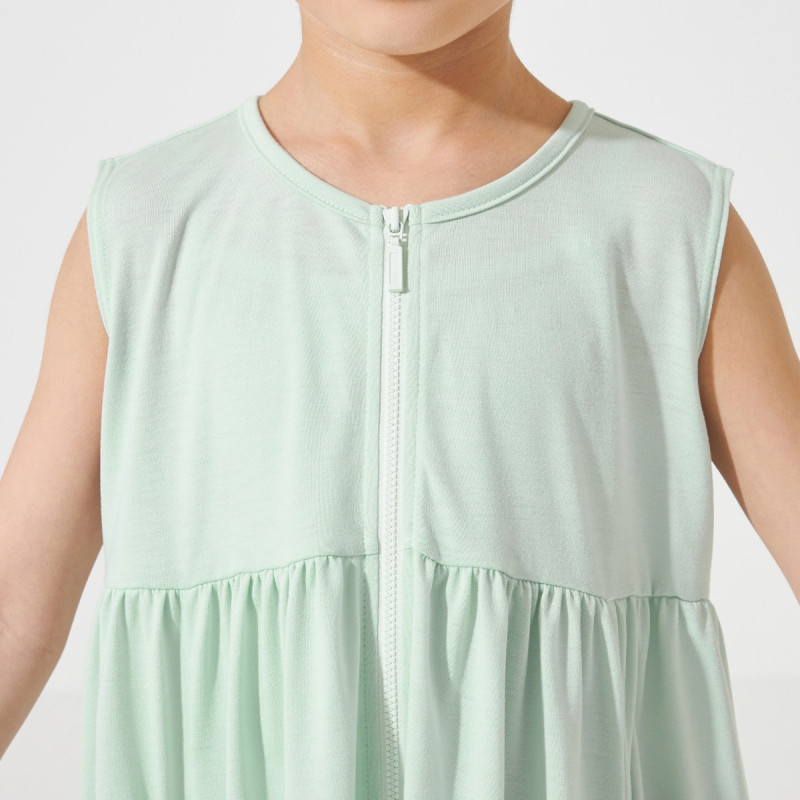 すっきりとしたヨークとボリューム感のあるギャザーで女の子らしさがありつつも、デイリーにさらっと着用しやすいジップアップワンピース