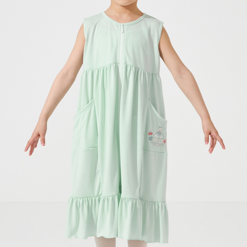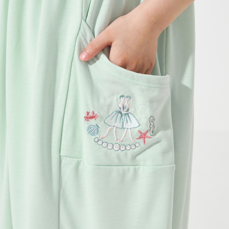 ポケットには夏にぴったりな海と真珠の刺しゅう、可愛らしさと涼しさを感じられるワンポイント。