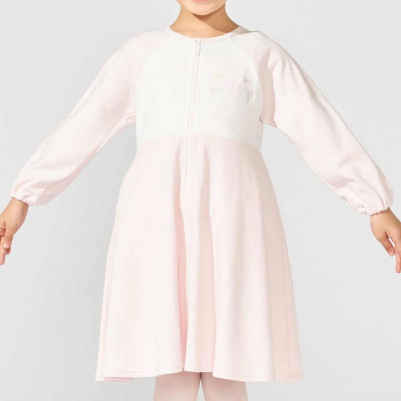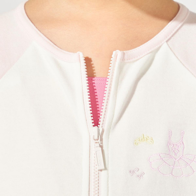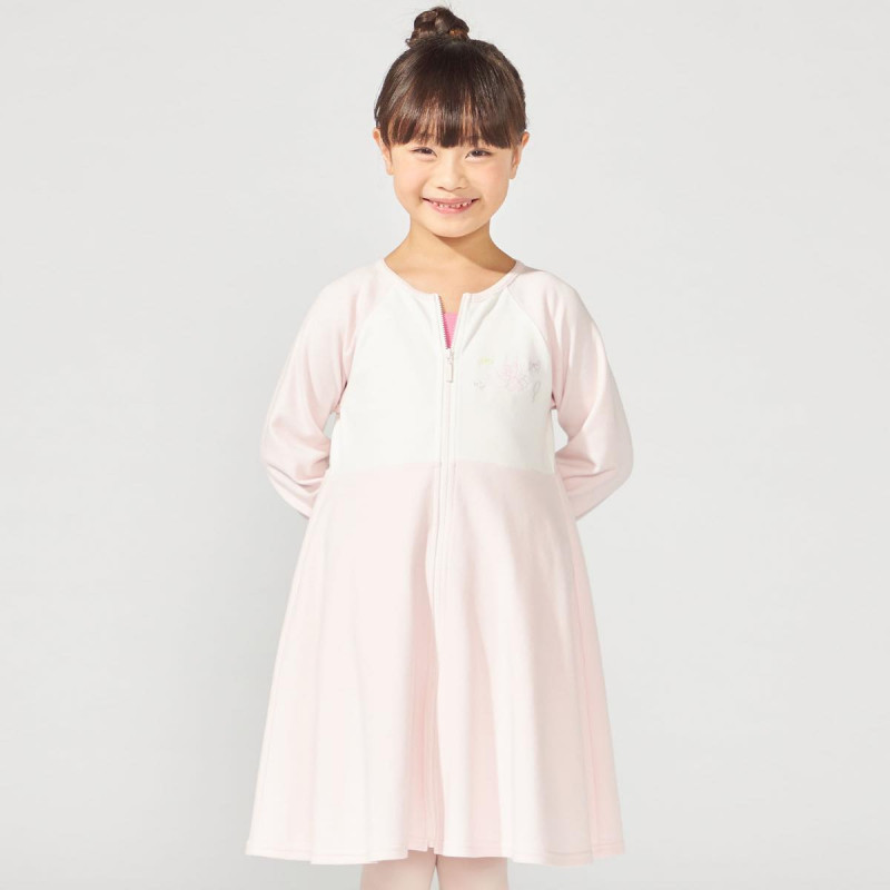 胸元にチュチュやティアラなどキュートな刺しゅう入りのジップアップワンピース