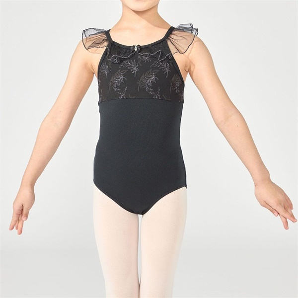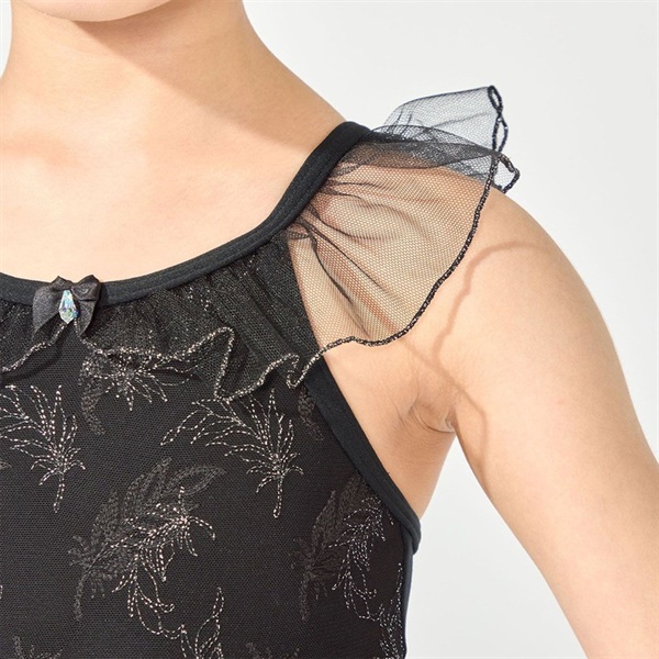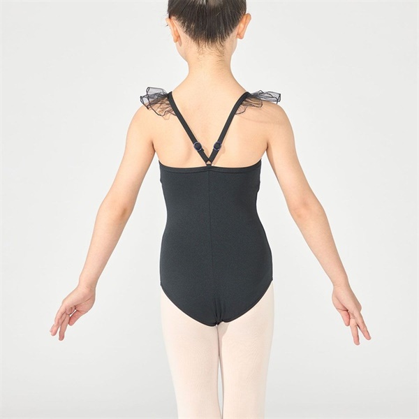 軽やかで透明感のある衿元のフリルがエレガントなキャミソールレオタード