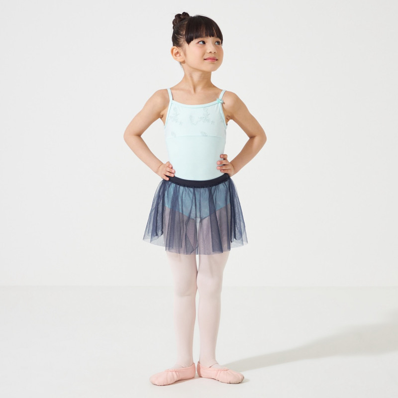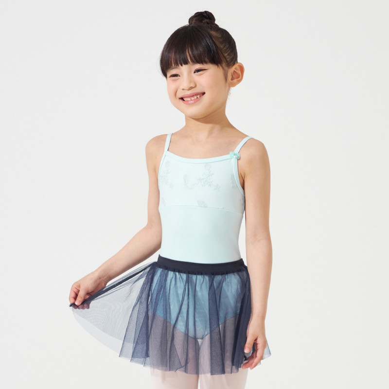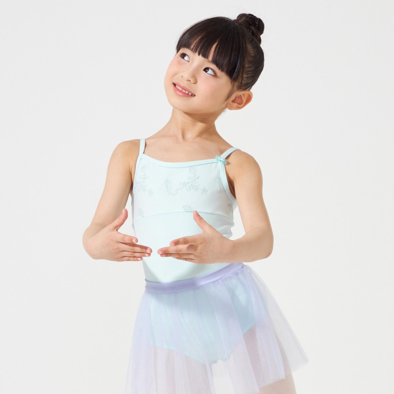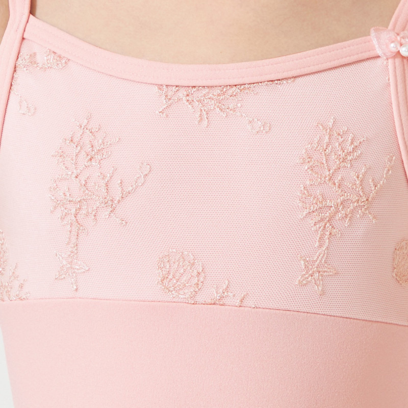 胸元に施したかわいらしい海の刺しゅうが主役のキャミソールレオタード