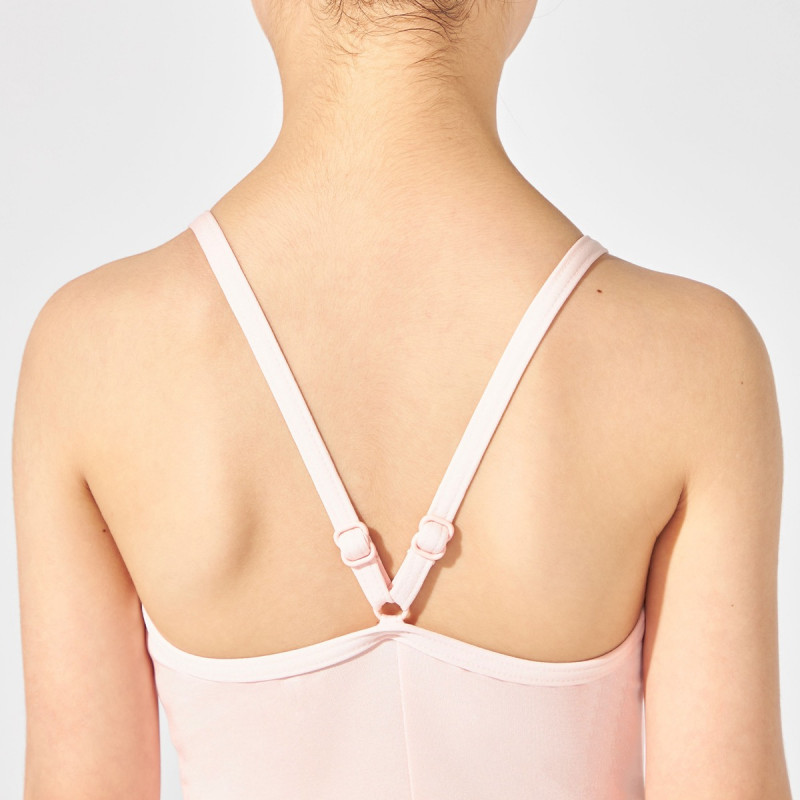V字のアジャスター付きストラップは華奢な体型でも着崩れしない仕様。