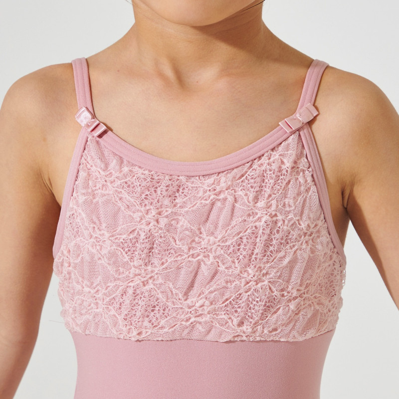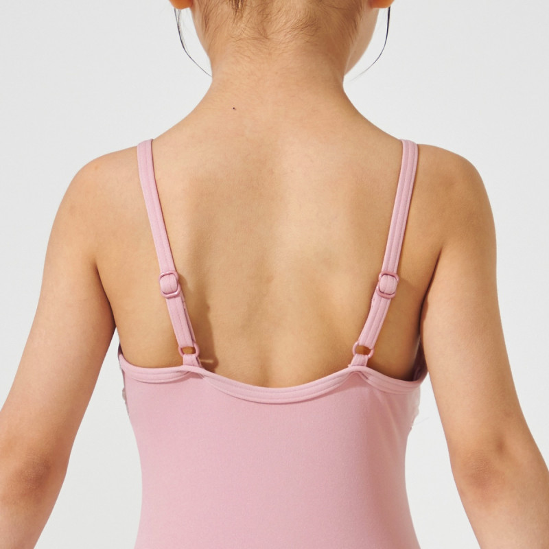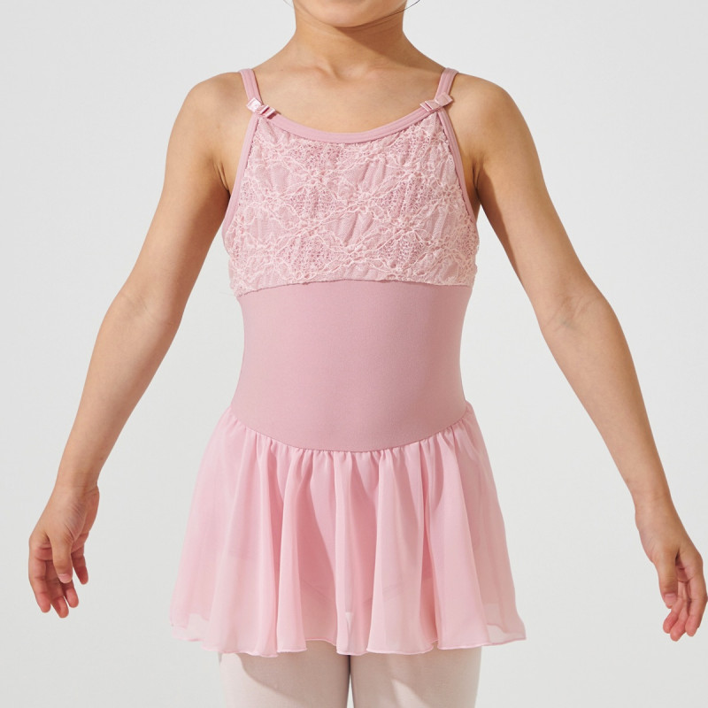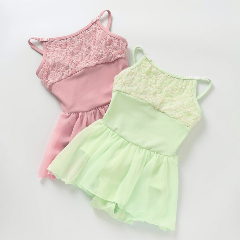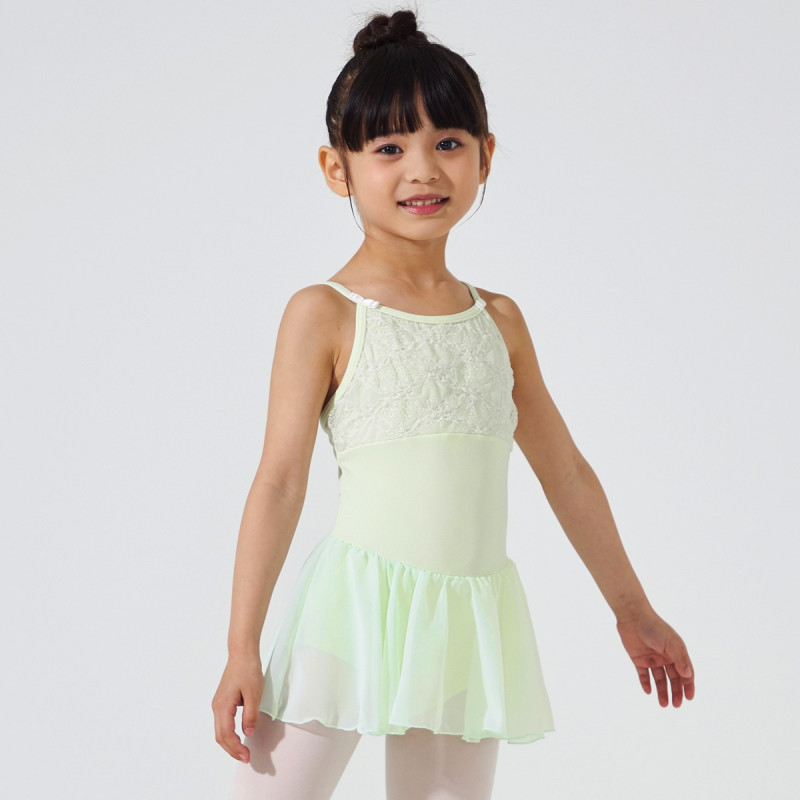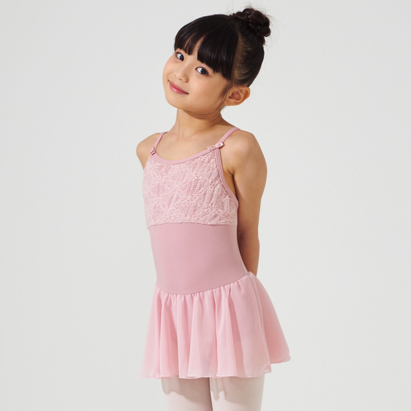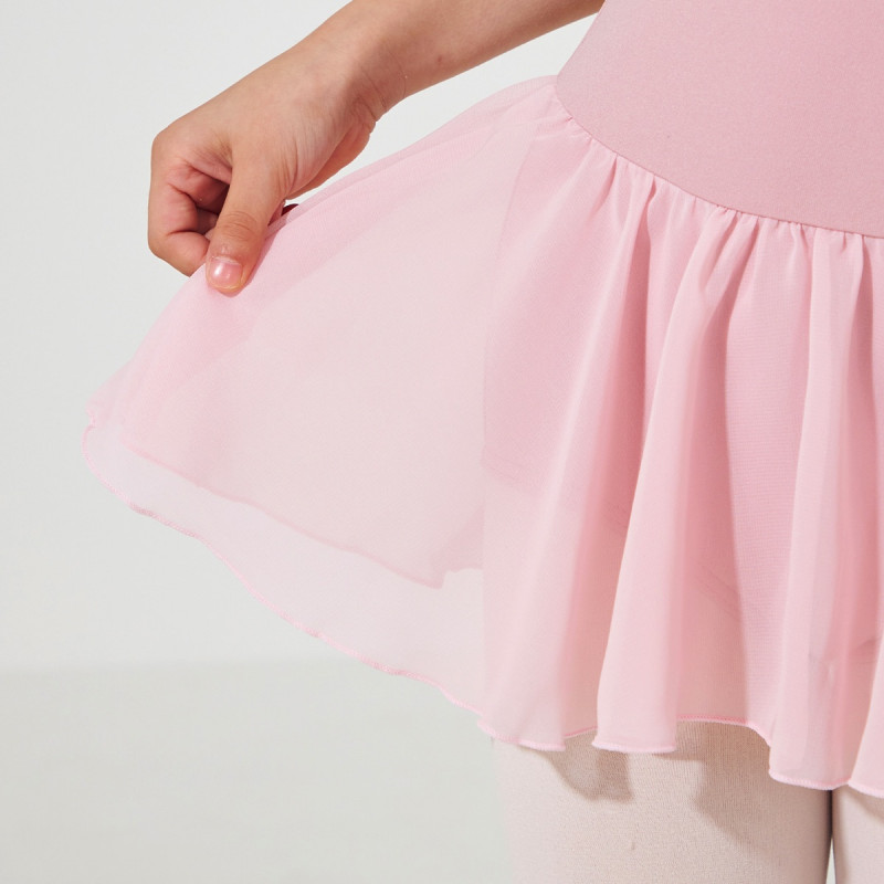 ストラップの両サイドについたリボンがワンポイントのキュートなデザインのスカート付きレオタード