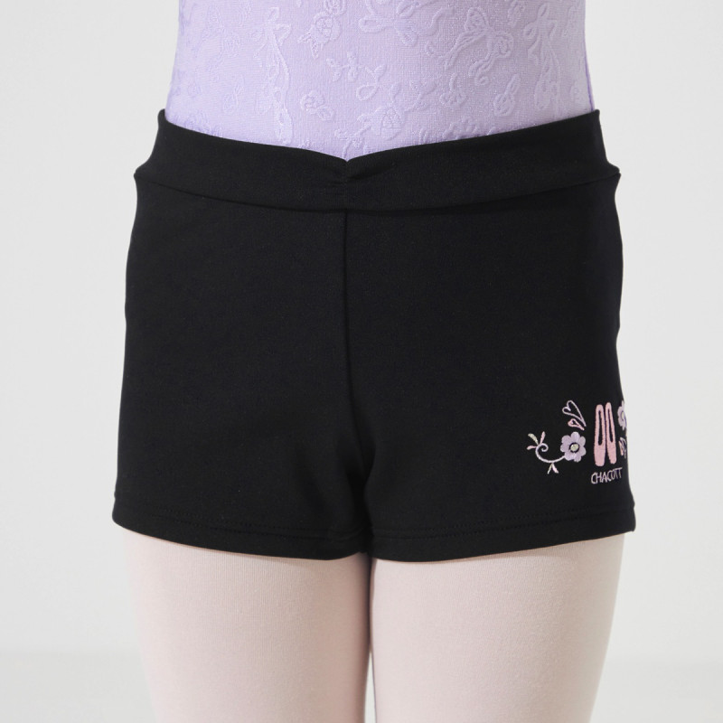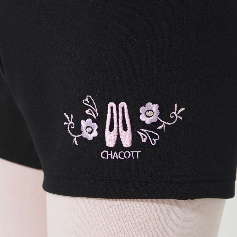 左下にトゥシューズとお花が華やかな刺しゅう入り。