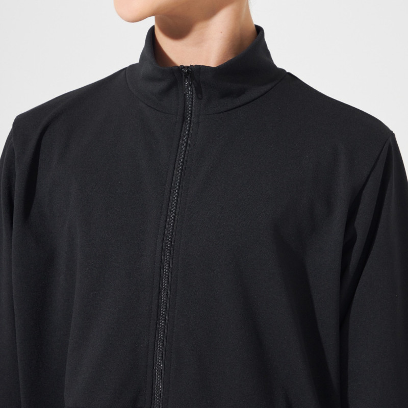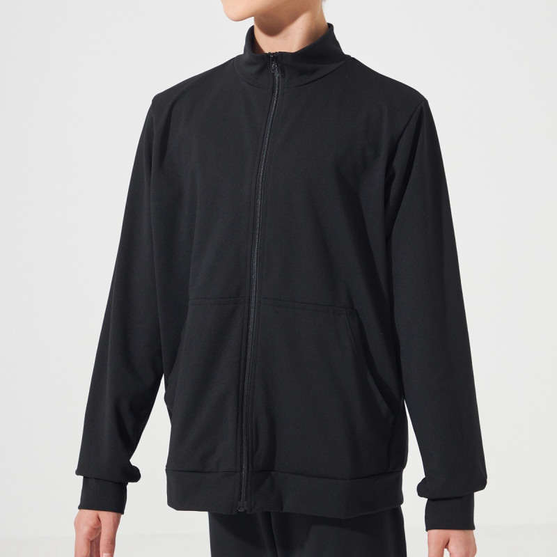 プレーンなシルエットのウォームアップジャケット