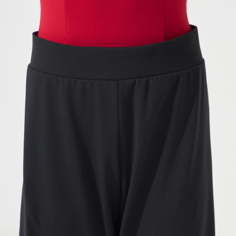 腰周りはスッキリとタイトなシルエットを保ちながら、開脚を妨げない“ならでは”のパターンを採用したウォームアップパンツ