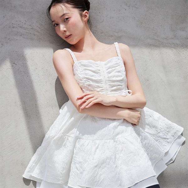 日本のバレエ業界を牽引し続けるブランド 「Chacott」 とのコラボレーション第 3 弾。ティアードデザインでふんわりとエレガントに仕上げたジャガードミニワンピースが届きました。