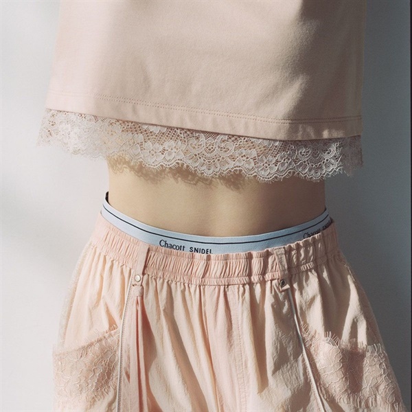 裾にはストレッチスカラップレースをあしらい、フェミニンさをプラスしました。