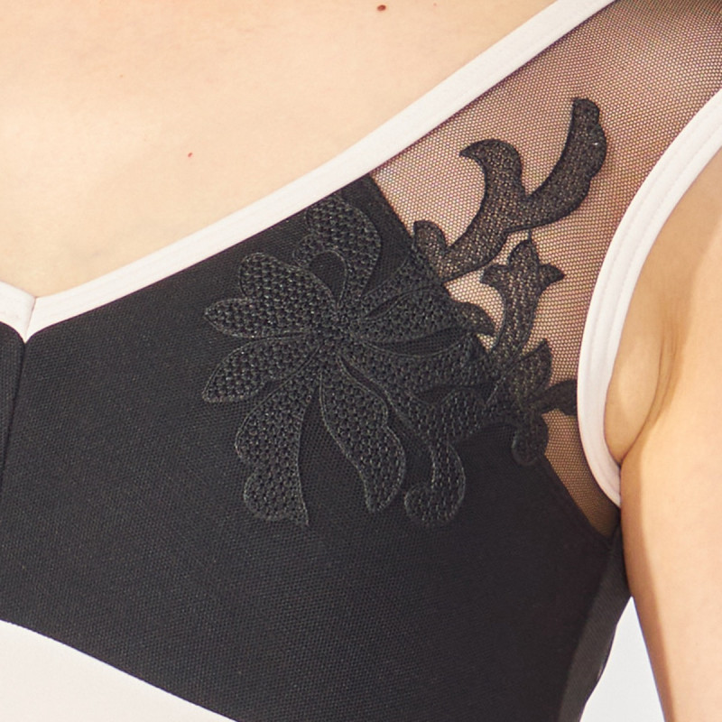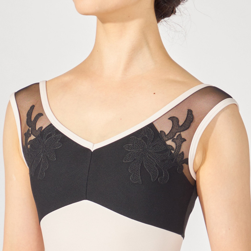 広めに開いたVネックが、3つのデザインの中でいちばん女性らしい印象のレオタード