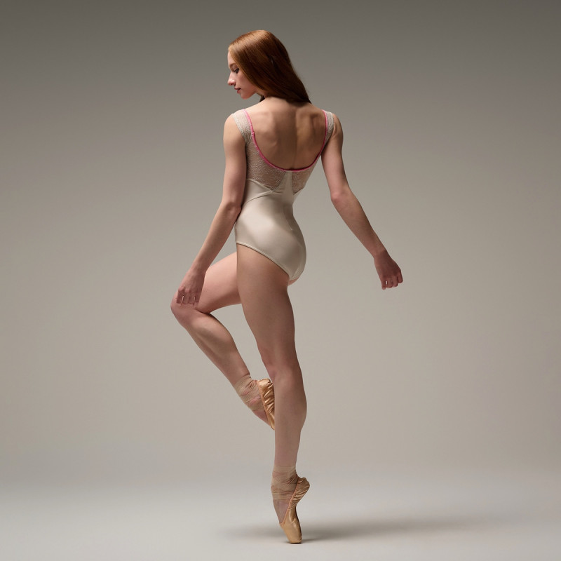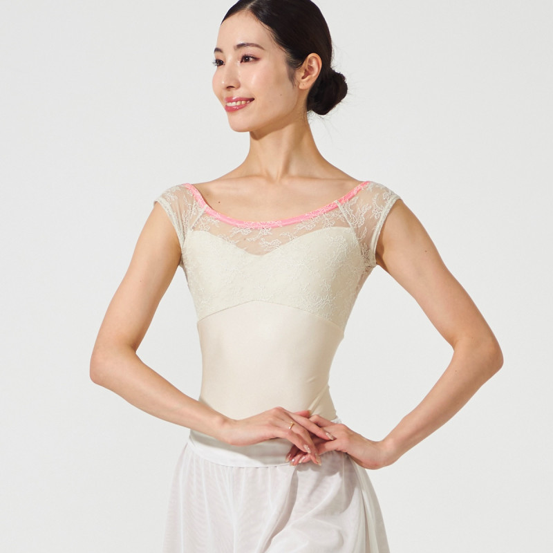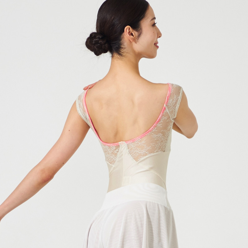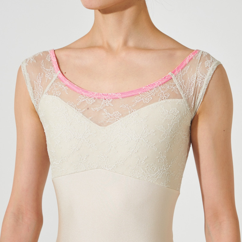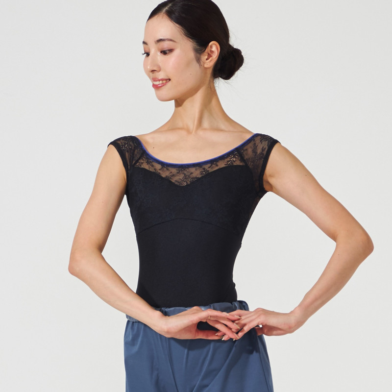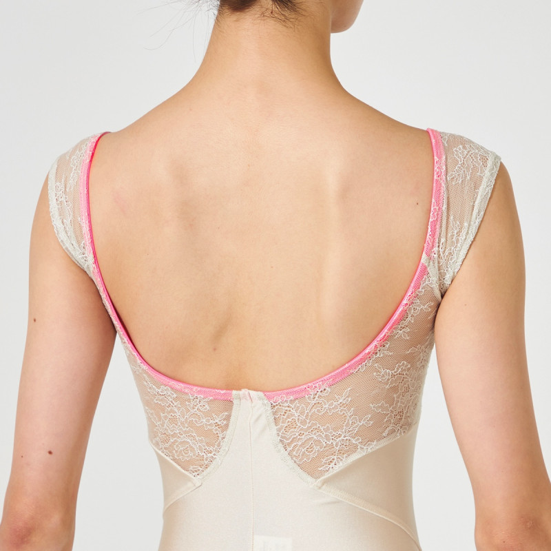 インポート素材 Sumatra とストレッチレースを使ったフレンチスリーブレオタード
