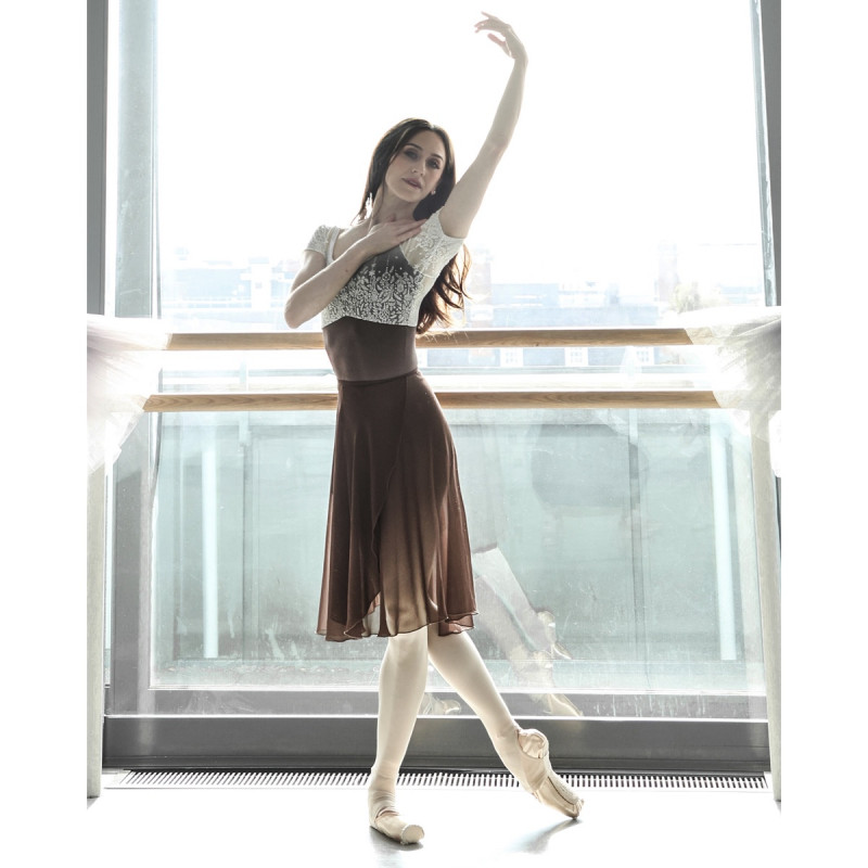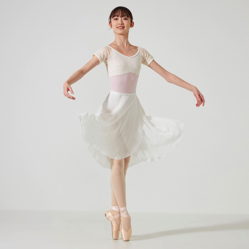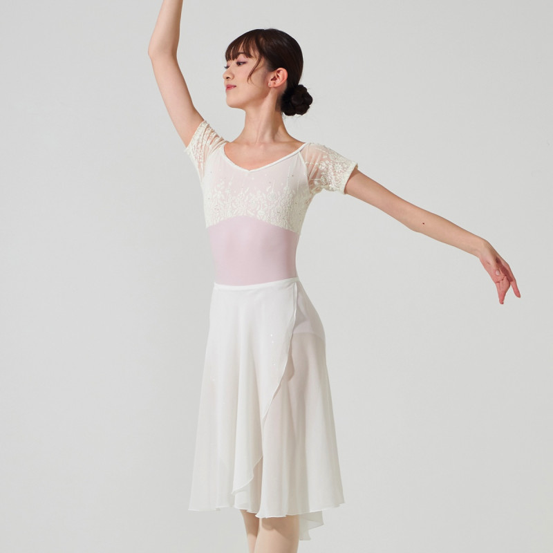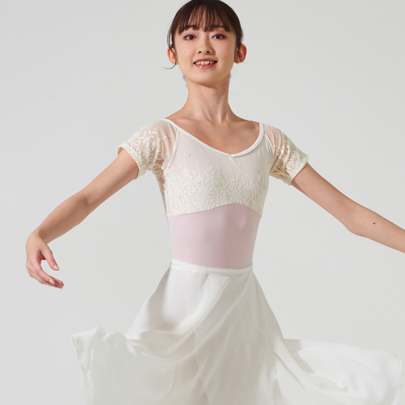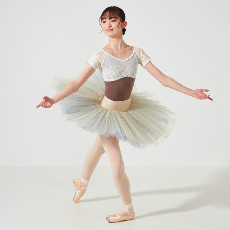 オリジナルフロッキープリントを載せたチュールと、優れたストレッチ性とフィット感、着心地の良さが人気のソフトスムース素材を使用。
