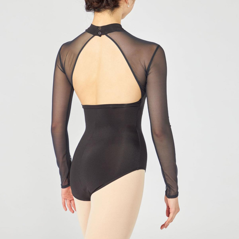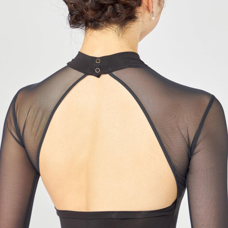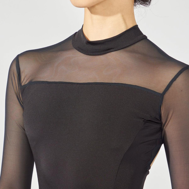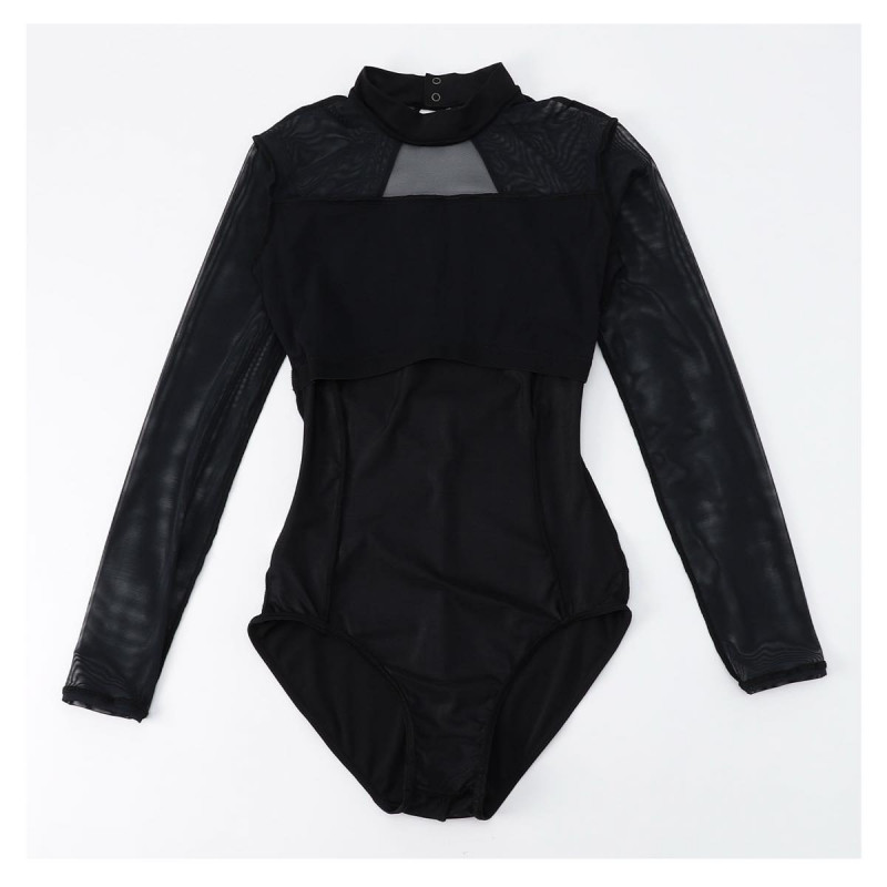 【Nela ライン】ロングスリーブレオタード(ブラック-S)