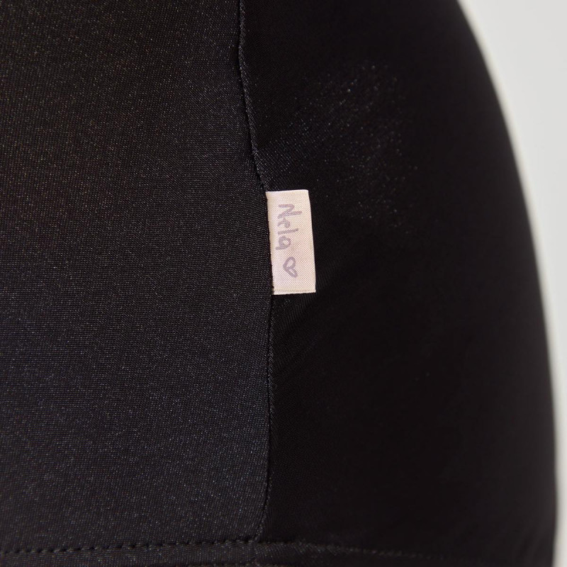 テンションがかかりやすい肩甲骨下のラインにはゴムを使わず、生地の切り替えでストレスを軽減し、快適な動きをサポート。