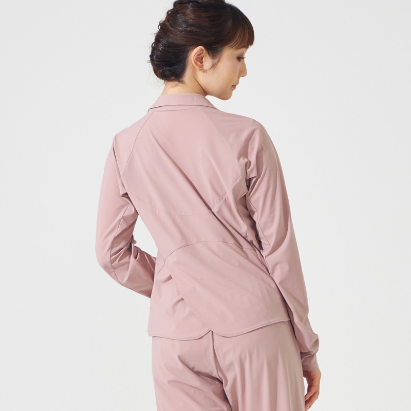 背中の中心に入れたデザイン切り替えでより身体を動かしやすく、背中をコンパクトにすっきりと見せる。
