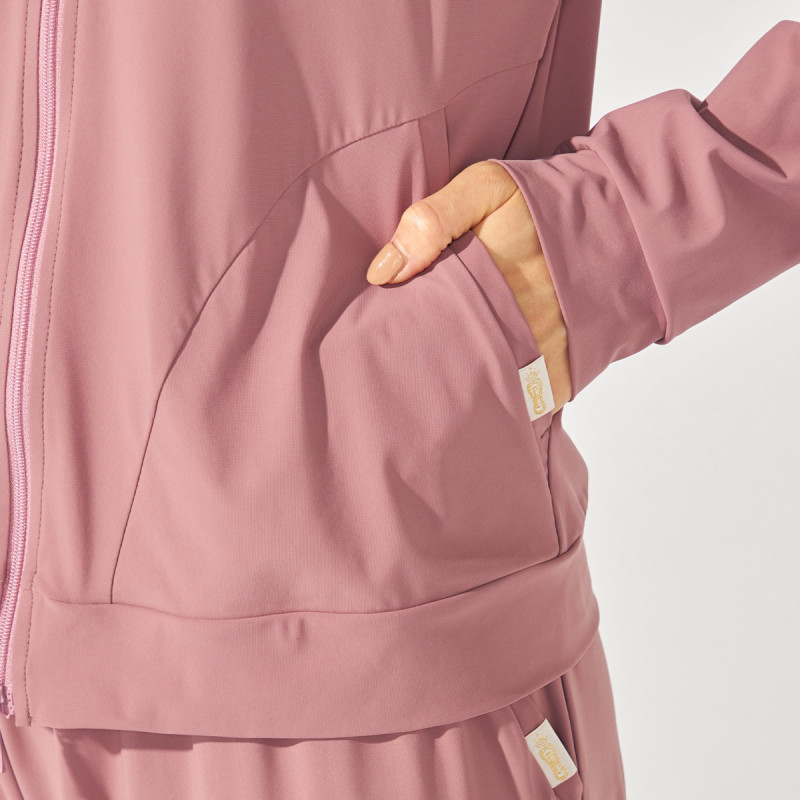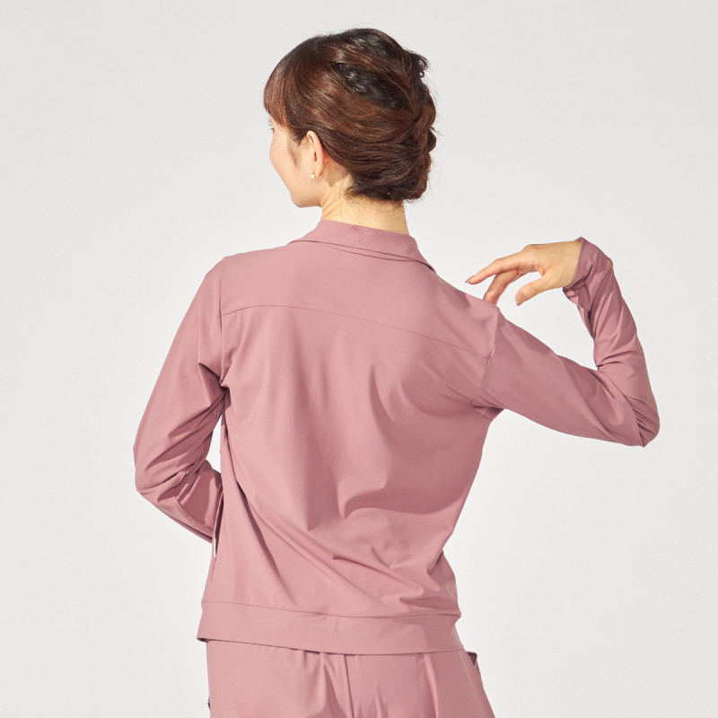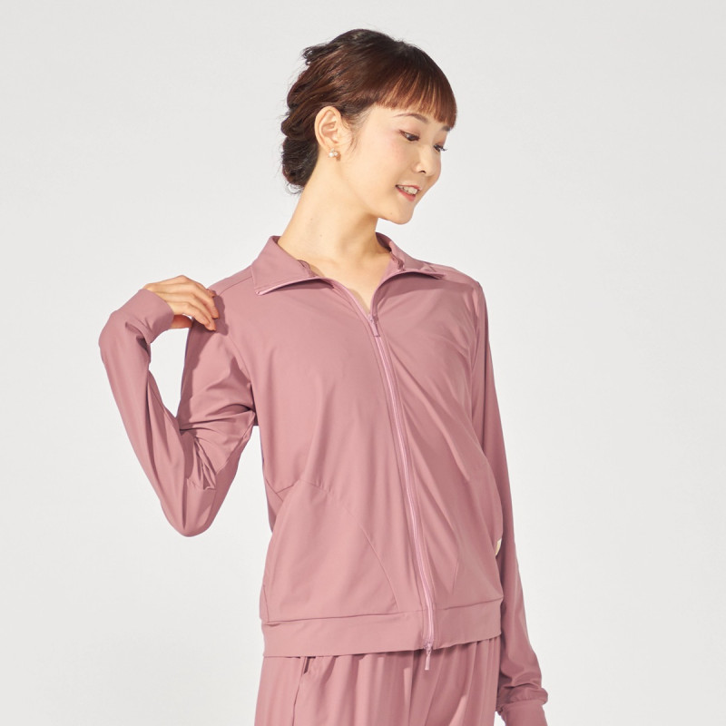 レッスンの合間や楽屋着として重宝する、シンプルなジップアップジャケット
