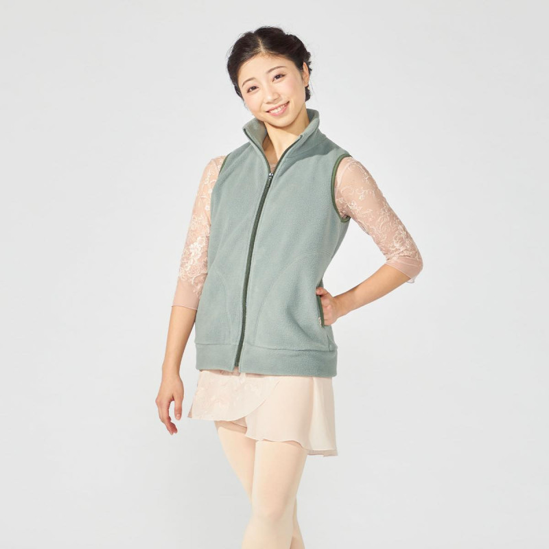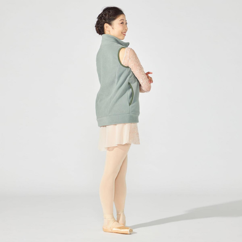 軽くあたたかなフリース素材を使用した、リハーサルや舞台裏で活躍するベスト