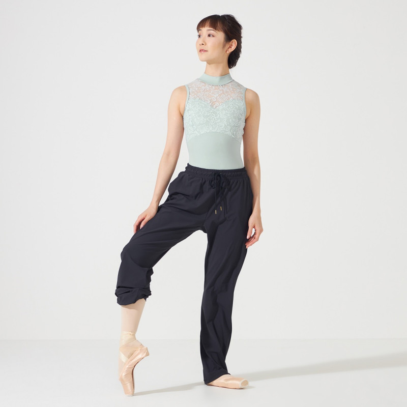 ウォーミングアップやバーレッスンの動きにも付いてくる適度なストレッチ性のある素材。