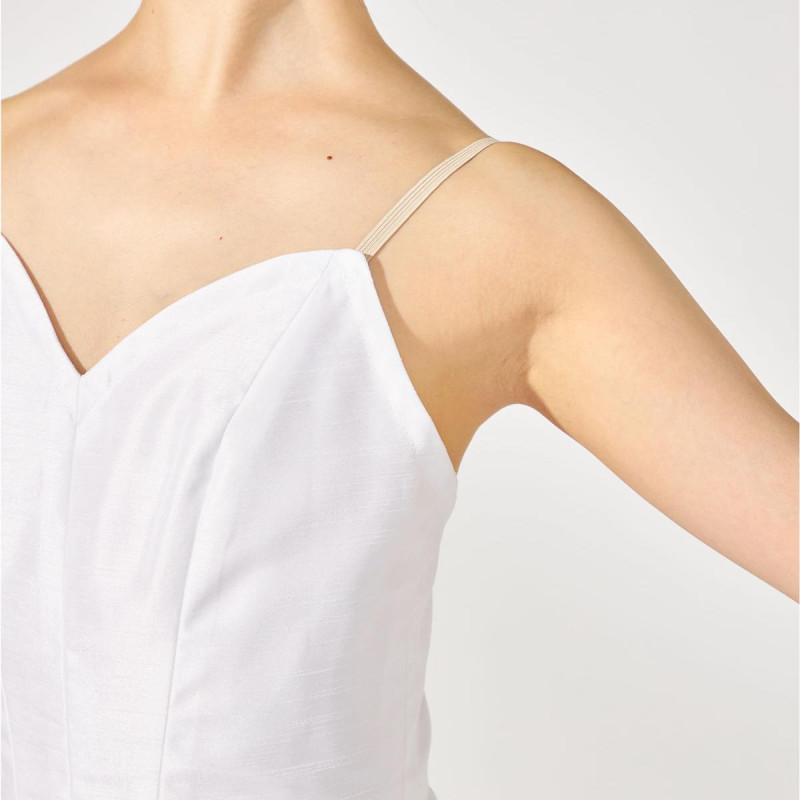 1.デコルテがきれいに見えるようにシャープなラインに。