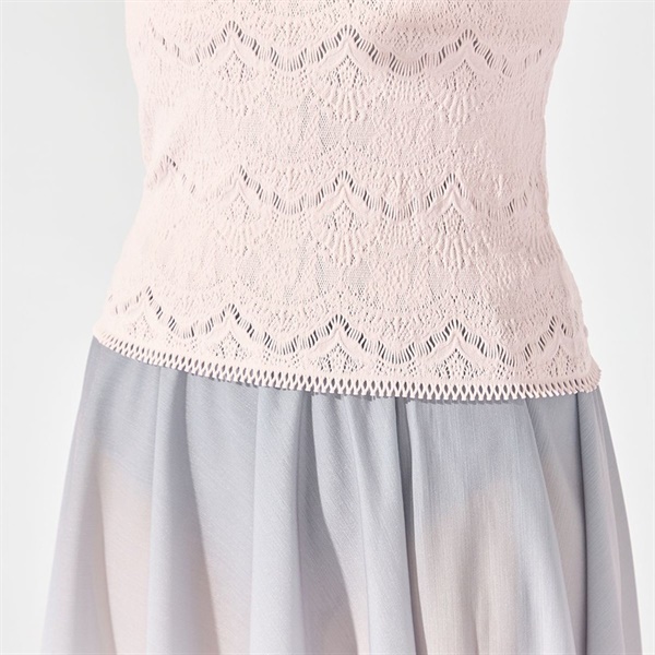 上品なシアー感で着る人を華やかに見せるスカラップレース柄もデザインポイント。