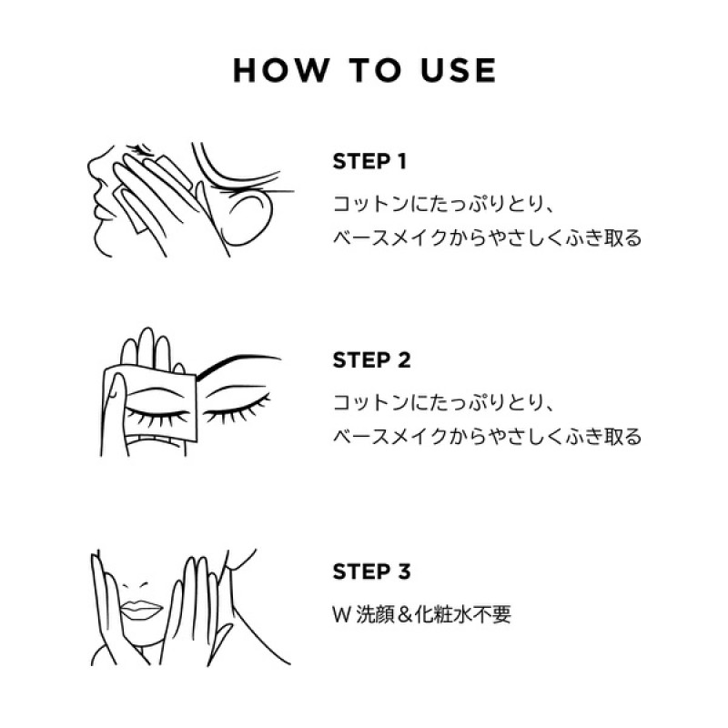 メイク油分を浮かし包み込む効果が高いので、コットンに含ませやさしく拭きとるだけで、こすらなくてOK。