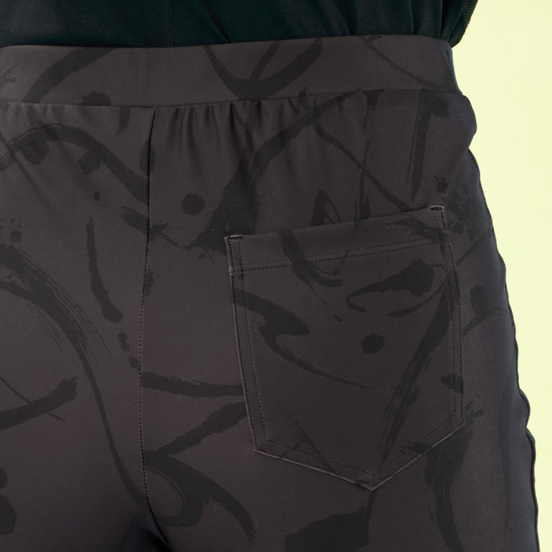 墨絵風のプリント柄はお手持ちのトップと合わせやすいカラー。