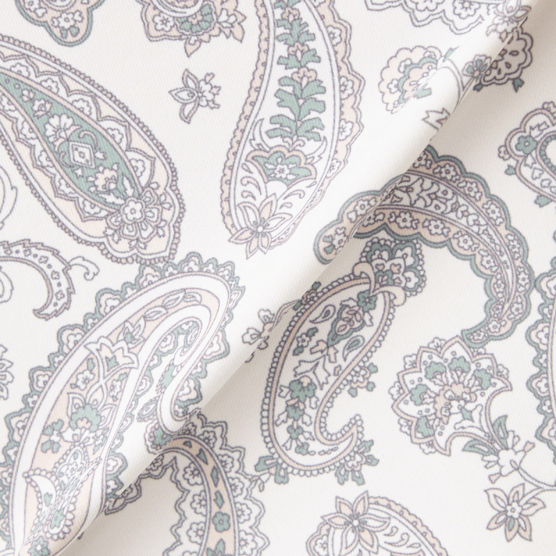 色鮮やかでモダンな雰囲気のあるペイズリー柄はシンプルな色使いが上品な雰囲気で涼しげな印象。