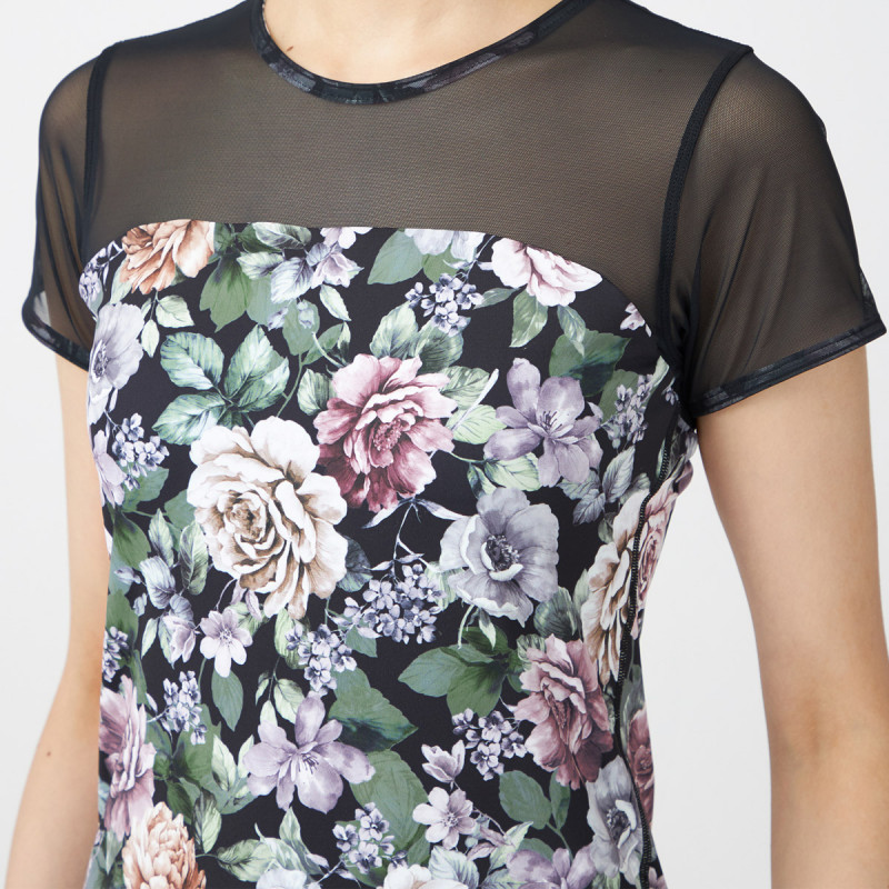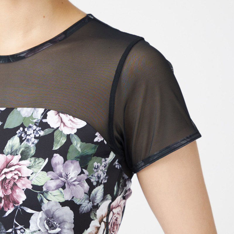大きめプリントが体のラインをはっきり見せすぎず、体形をカバーにも。