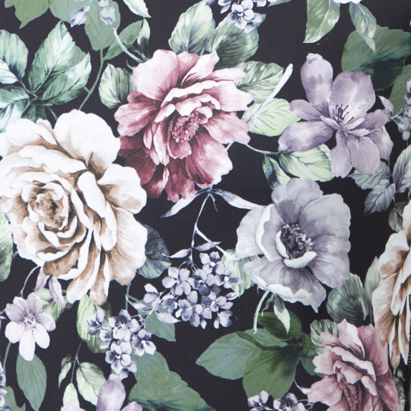ローズや芍薬、ダリアの様な華やかでドラマティックな花々を散りばめて、秋ムードのオリジナルプリントにデザイン。