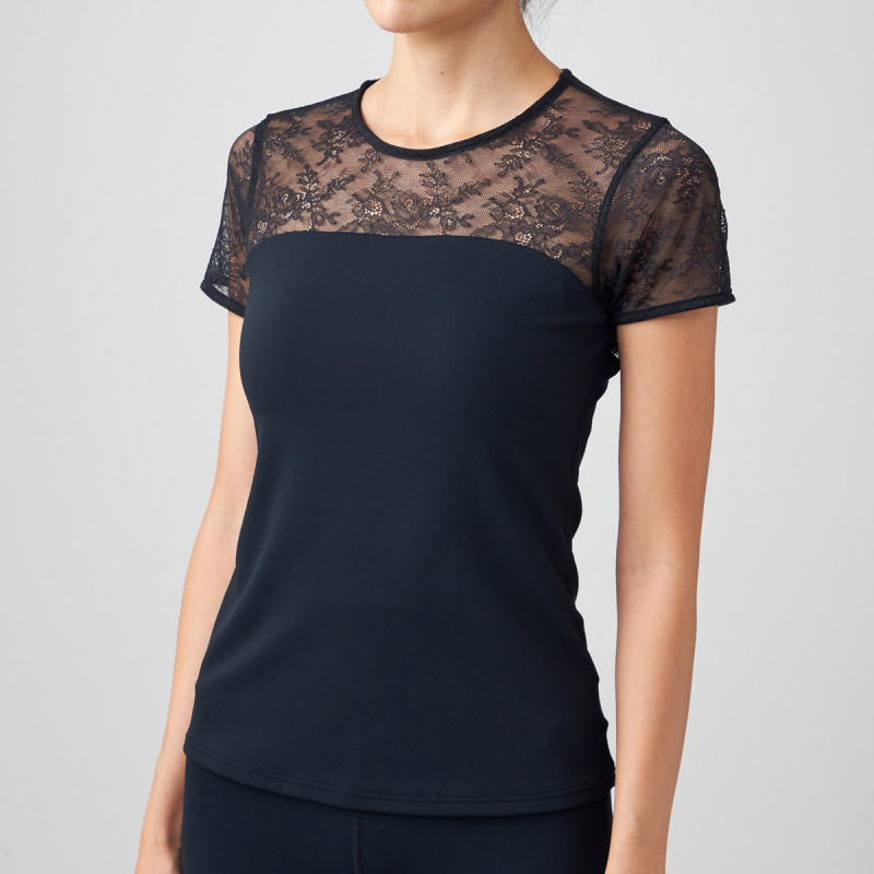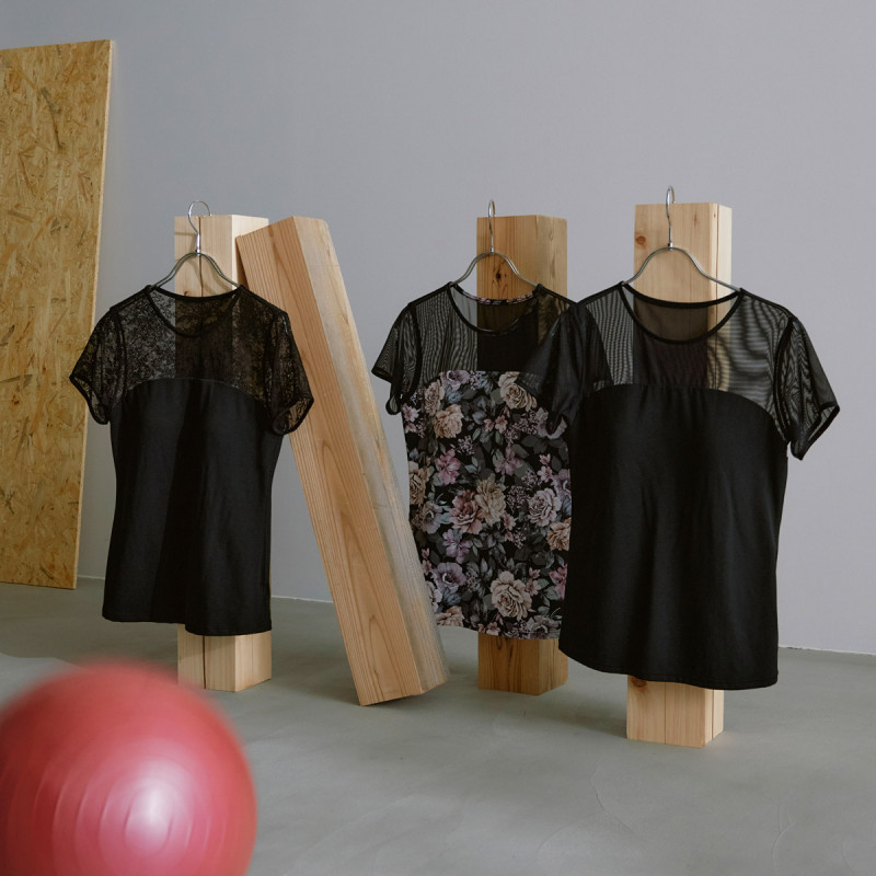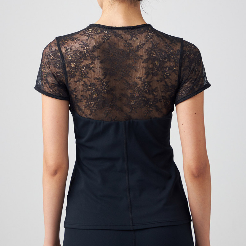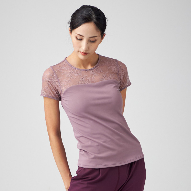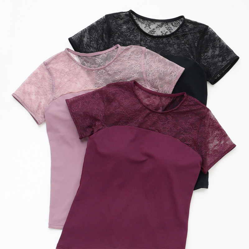 スムーストップの型をもとに、メッシュ部分をレースに置き換えたベーシックなトップ。