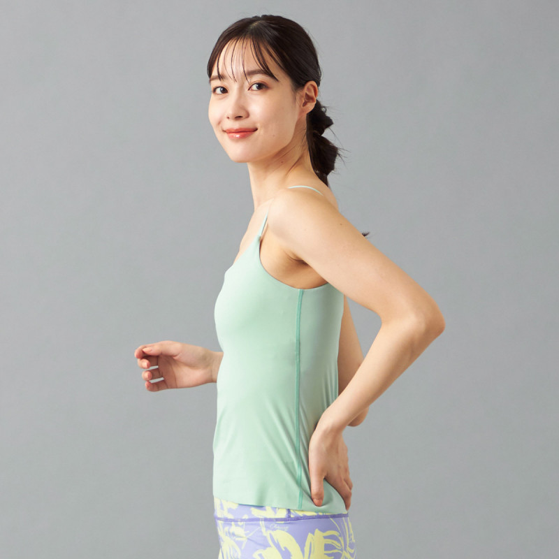 一体型の胸カップは、胸パットを圧着してシームレスでなめらかな肌当たりに。