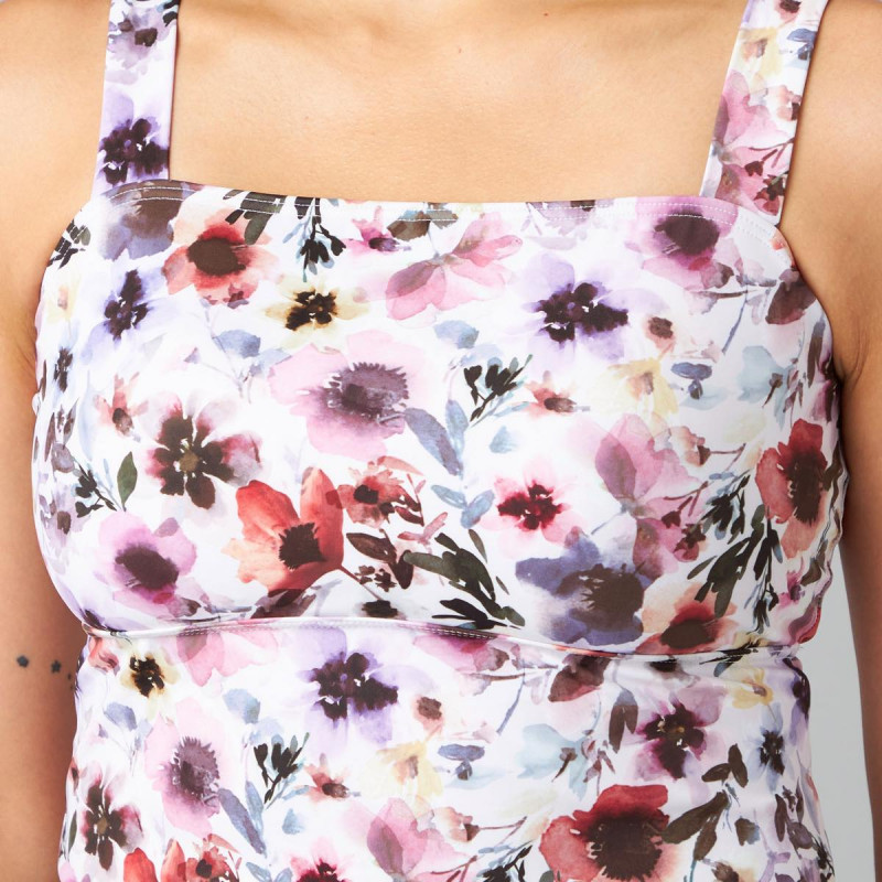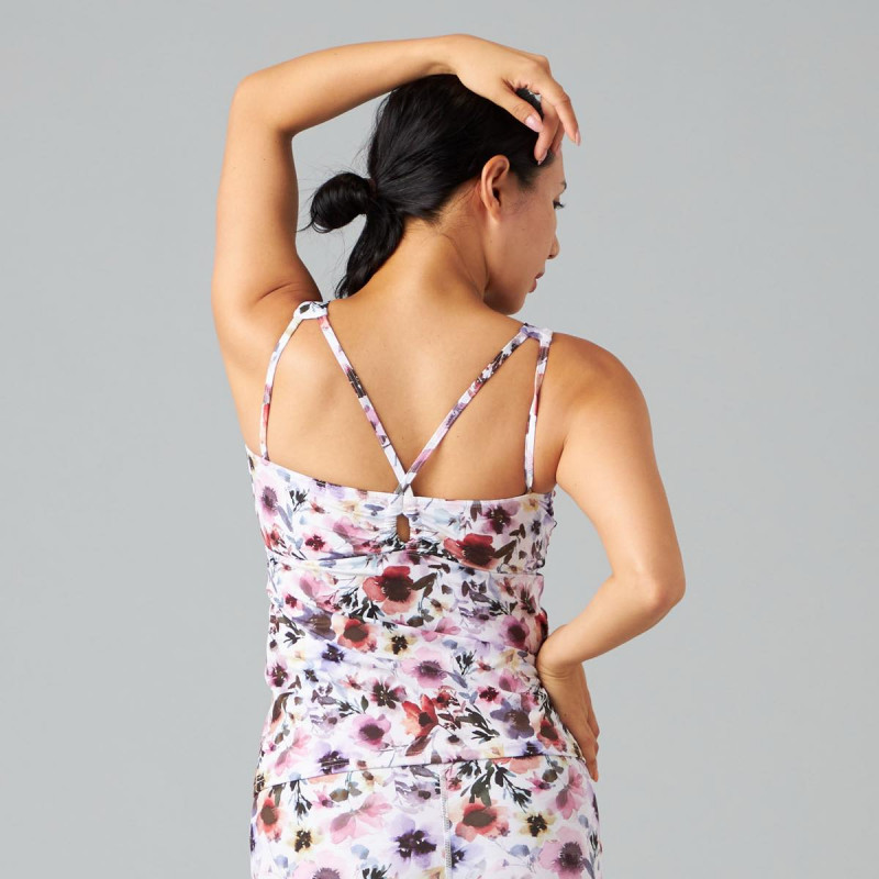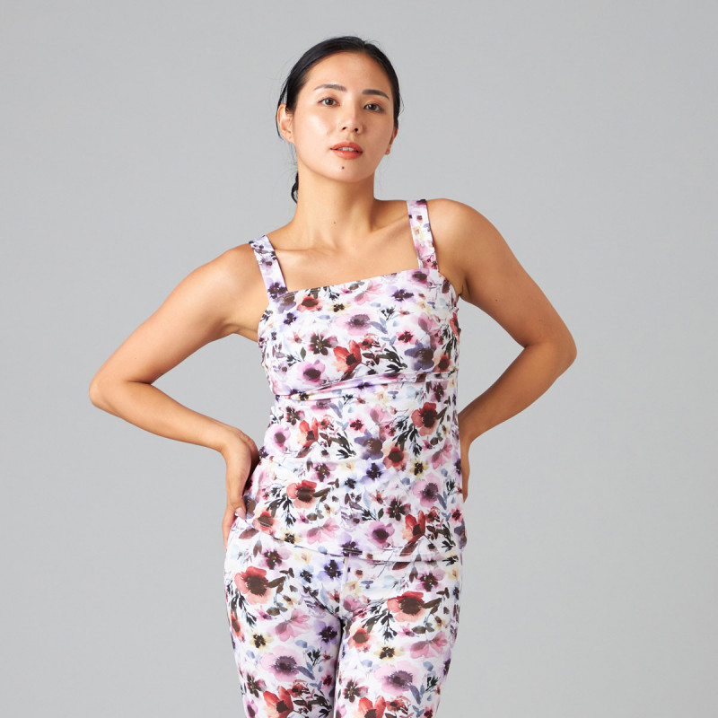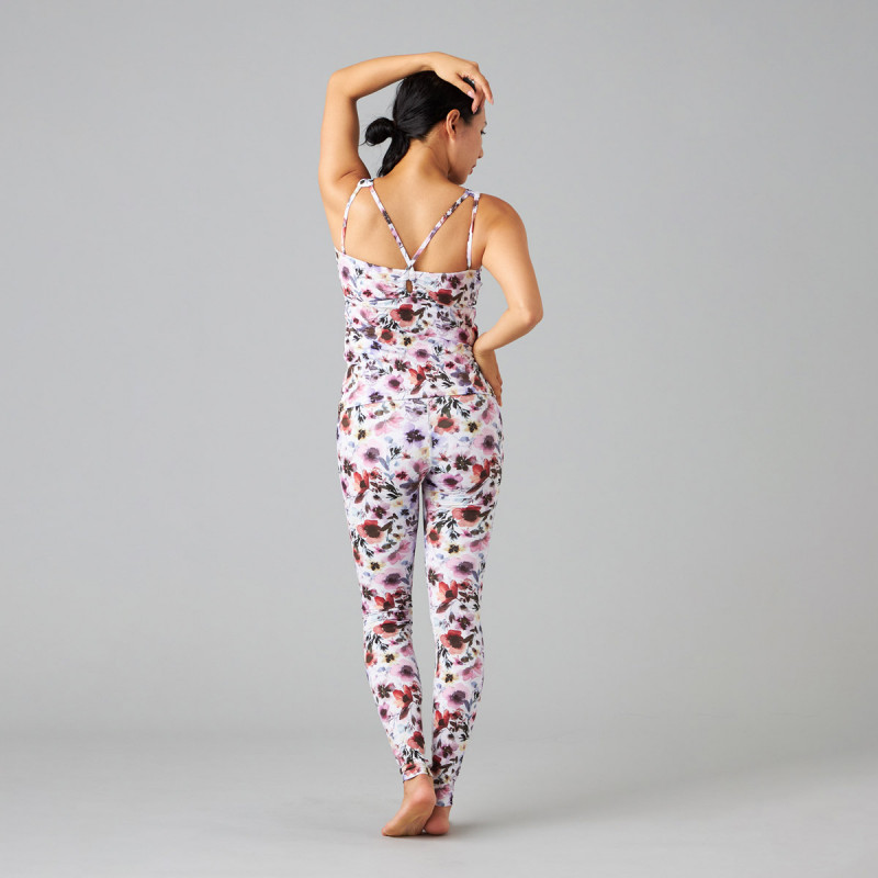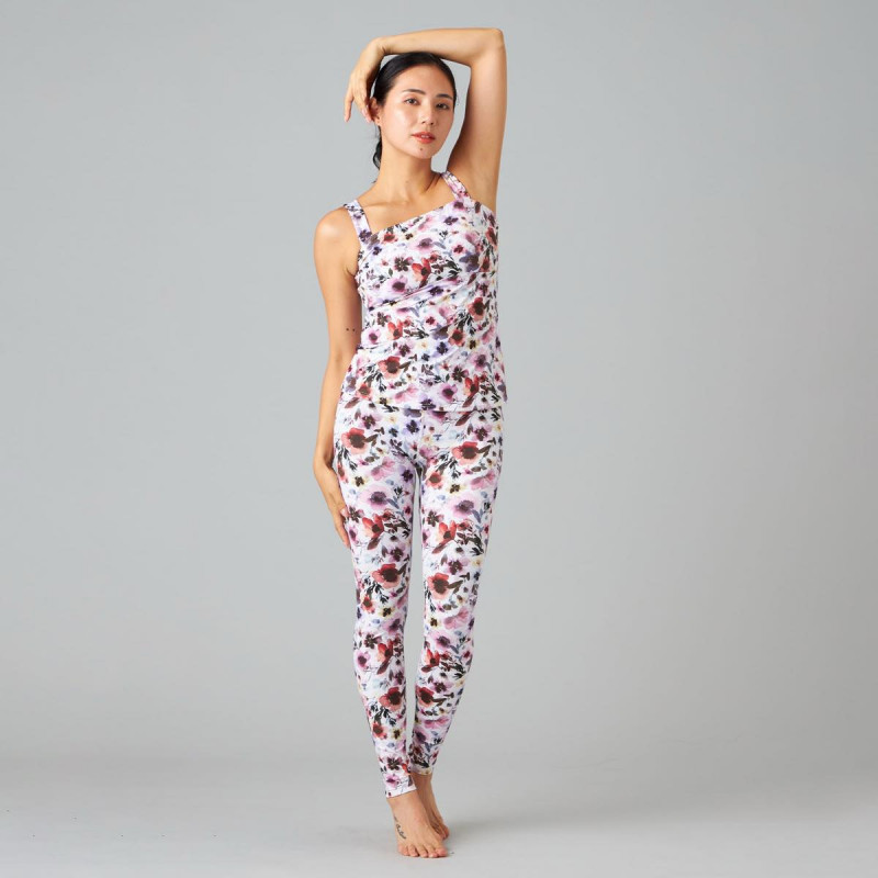 水彩タッチで描かれた花柄が、まるで呼吸するように身体になじむヨガウェア。