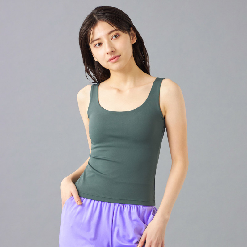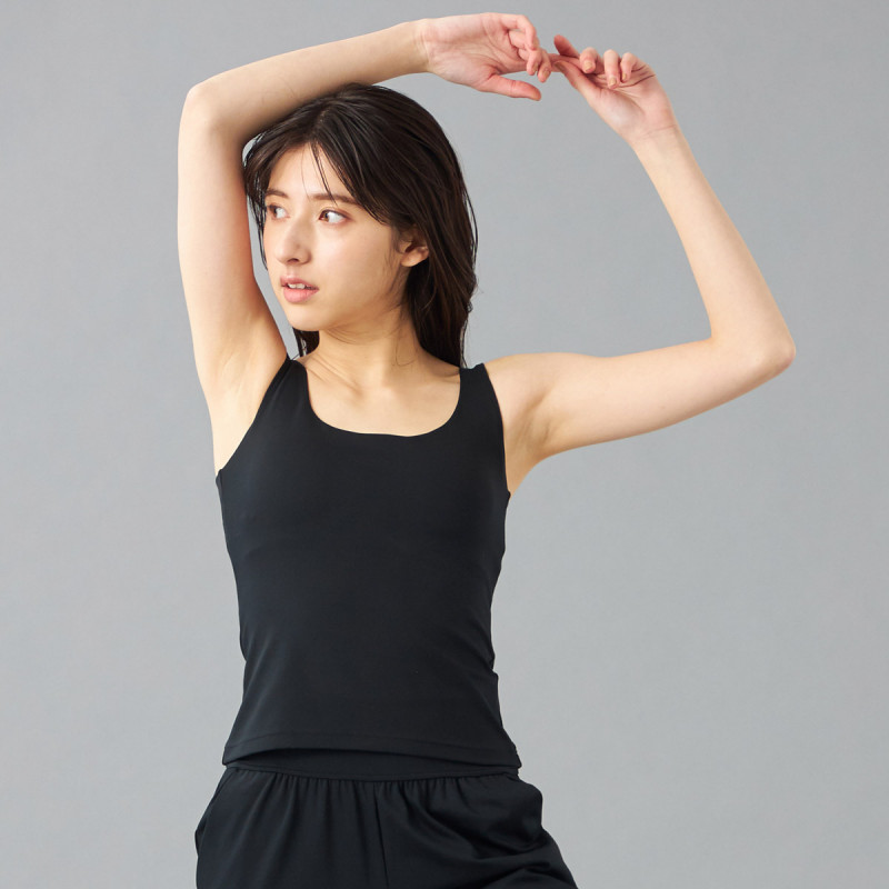 程よいサポート感でしなやかにフィットするロング丈のブラトップ