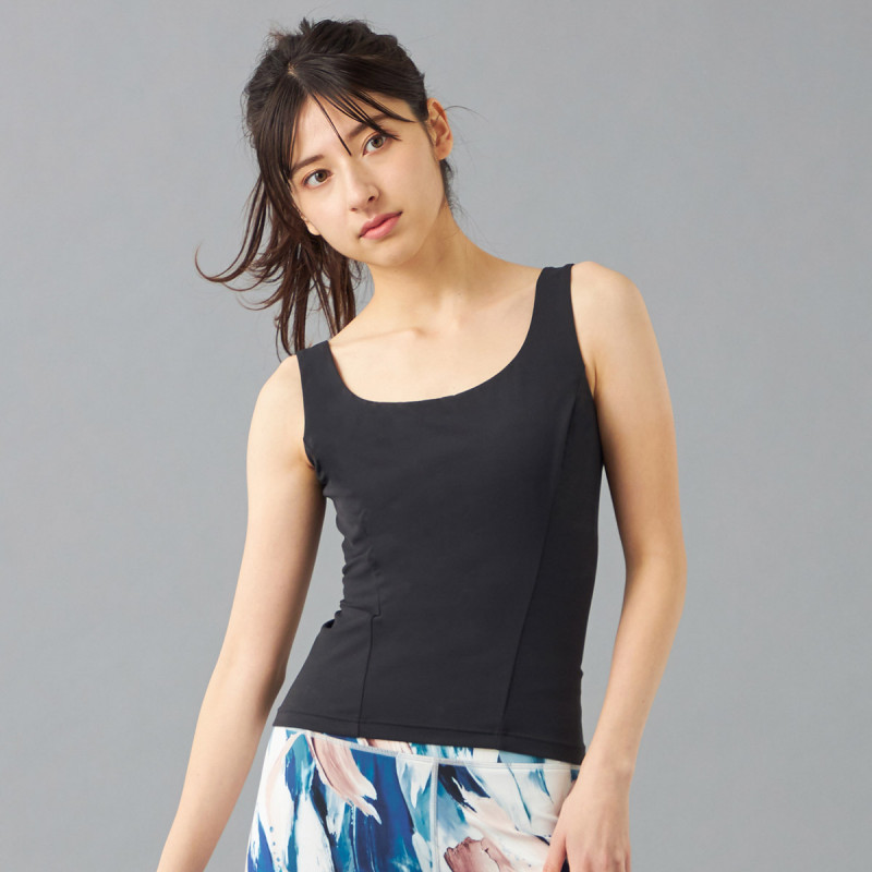 バッククロス構造で胸の開き、きれいな姿勢へアプローチするロング丈のブラトップ