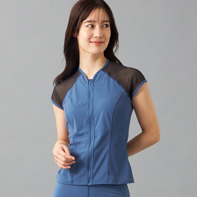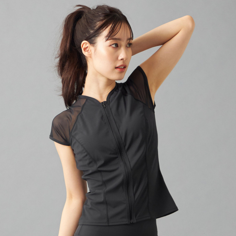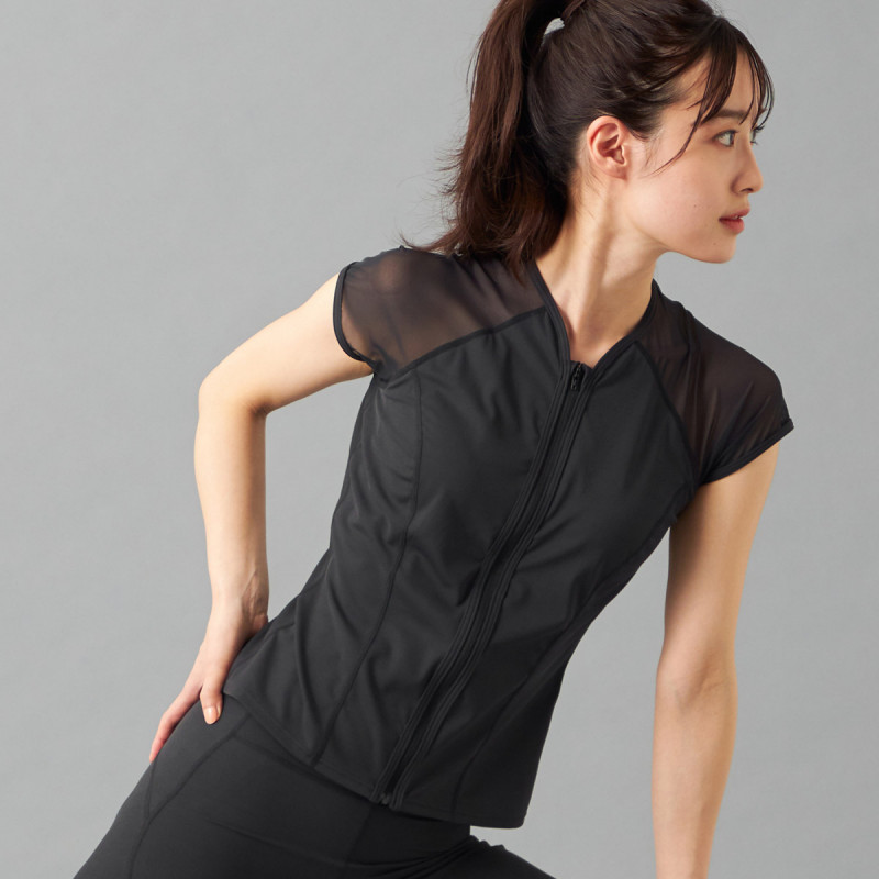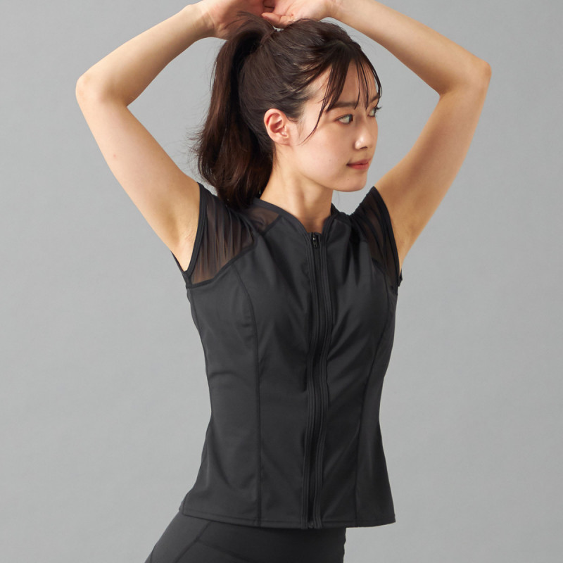 Boost ブラトップの機能のままフロントジップ・袖付きにアレンジ。