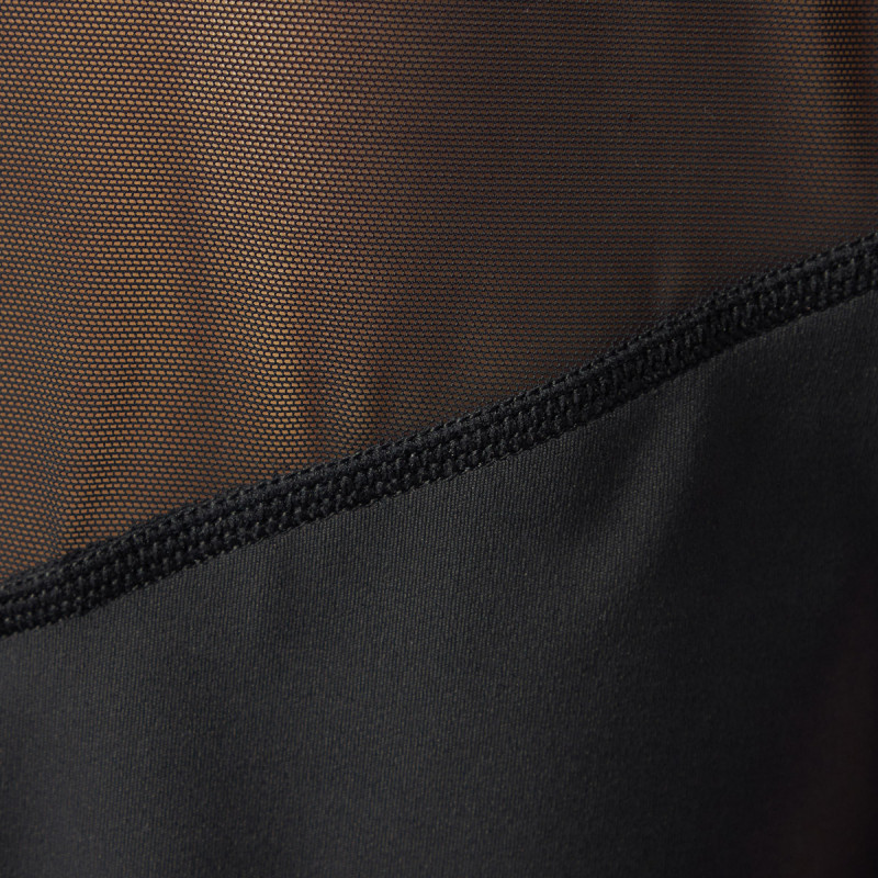 キックバック(生地を伸ばした後に元の形に戻る力)に優れており動くたびに体にフィットするように設計。