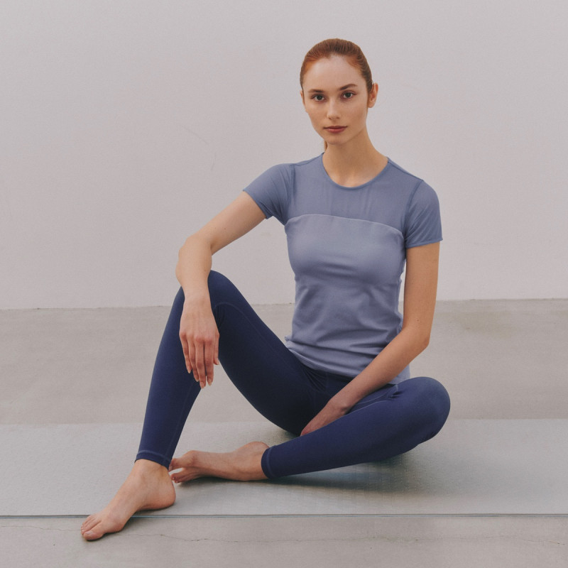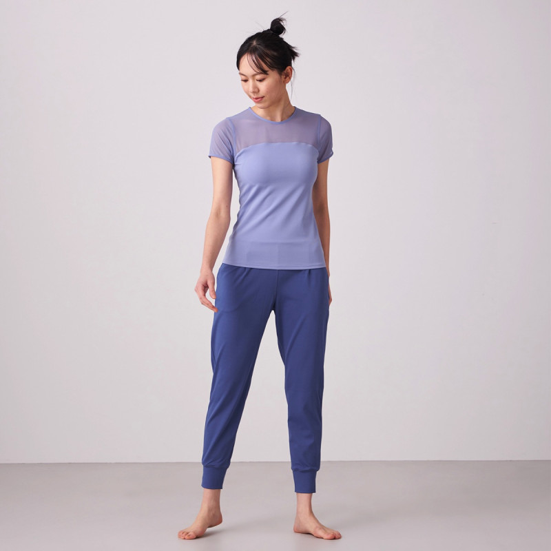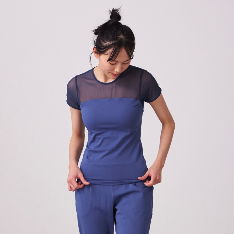 接触冷感と高い消臭性、抗菌防臭性により汗をかくレッスンにも安心な素材。