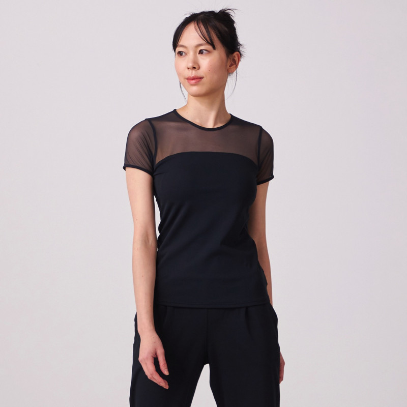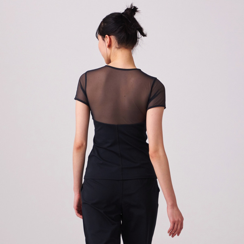 バレエのレオタードを思わせる、上品なネットの透け感がポイント。