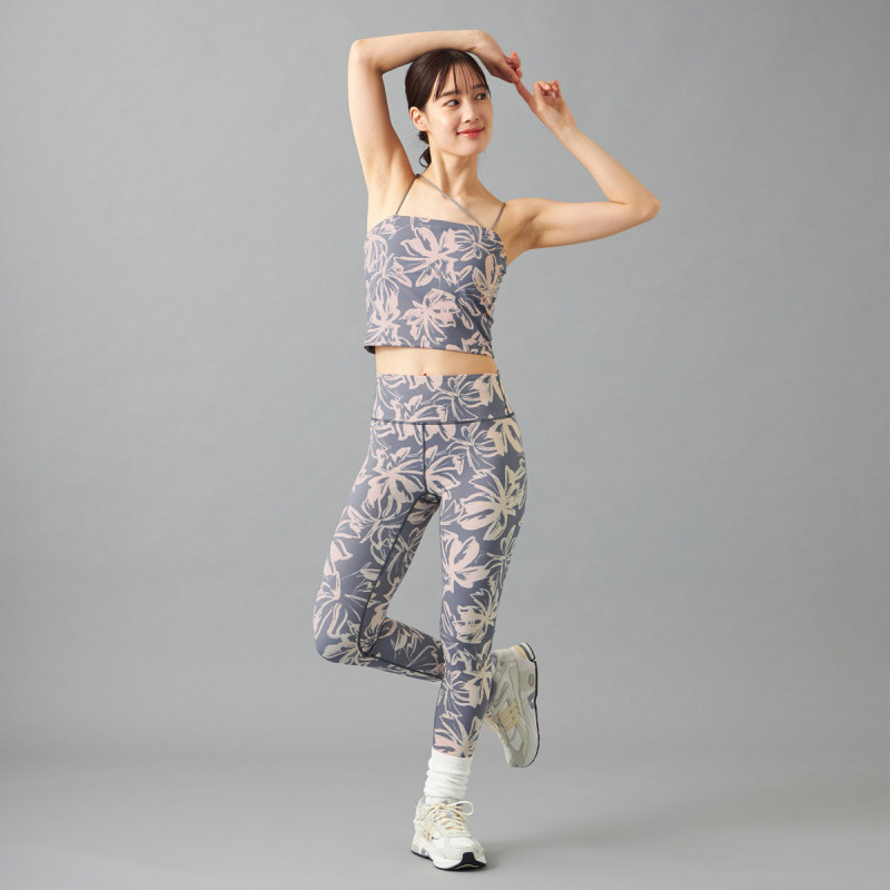 華やかな花柄プリントがワークアウトに彩りを加え、スタジオでも映える一枚。