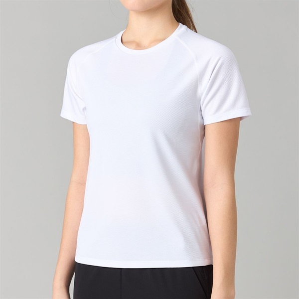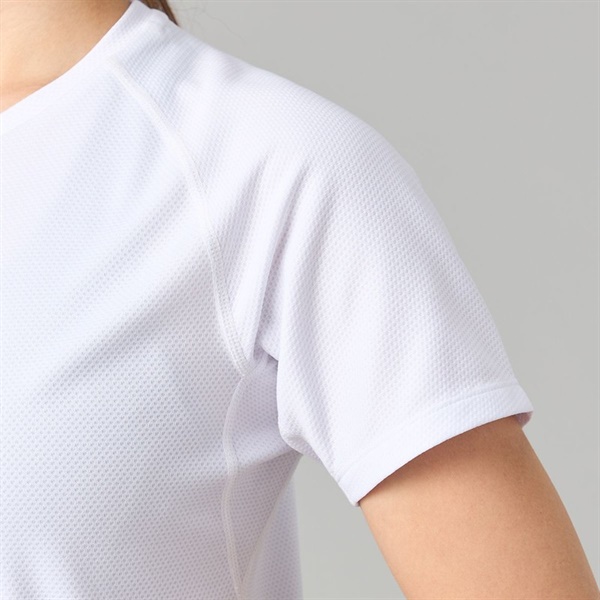 太陽の光をカットしながら、汗を素早く吸水して乾かし風通しもよい構造の素材を使用したTシャツ。