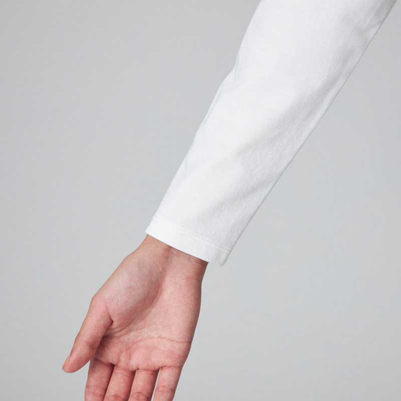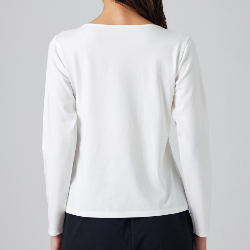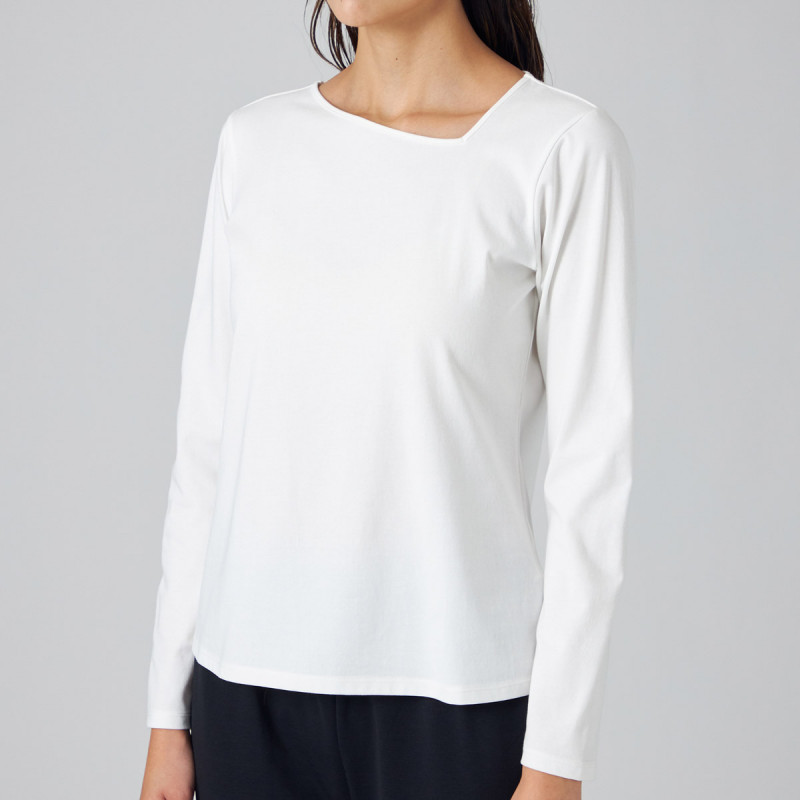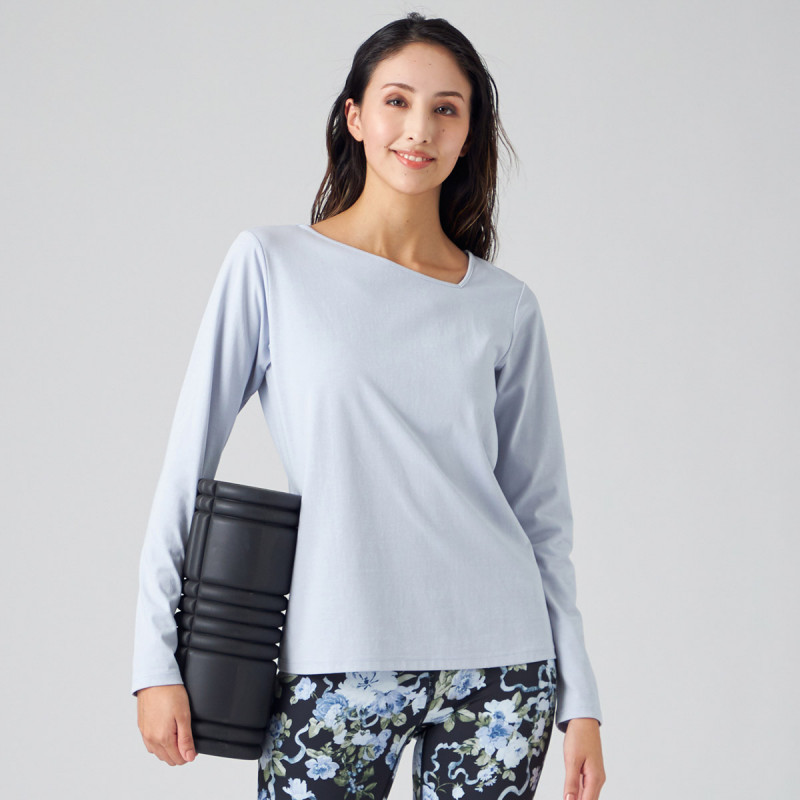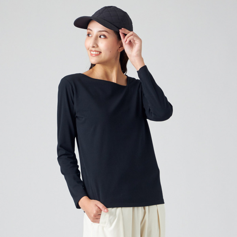 伸縮性にも優れた SORONAR※というポリエステルを使用しストレッチ性があり、生地の表面をきれいに仕上げた滑らかな肌触りのプレーティング天竺。