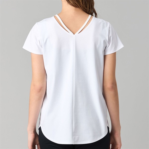 背中にサテンリボンがV字にあり光沢感をプラス。