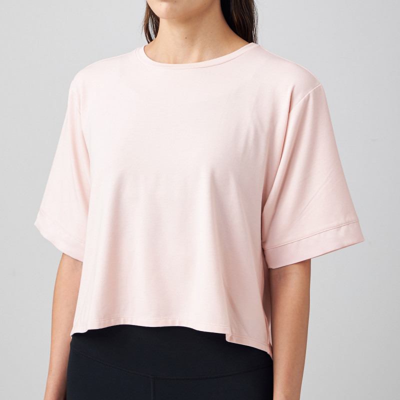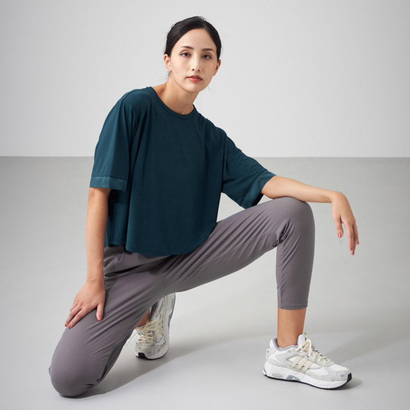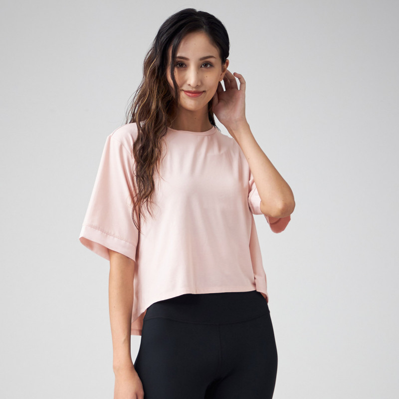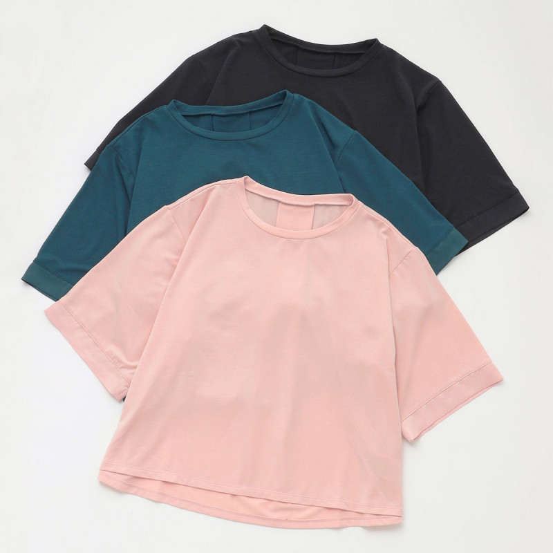 袖口にサテンのアクセントのボックスシルエットTシャツ