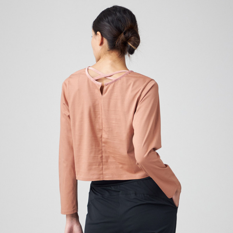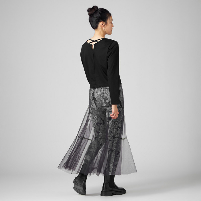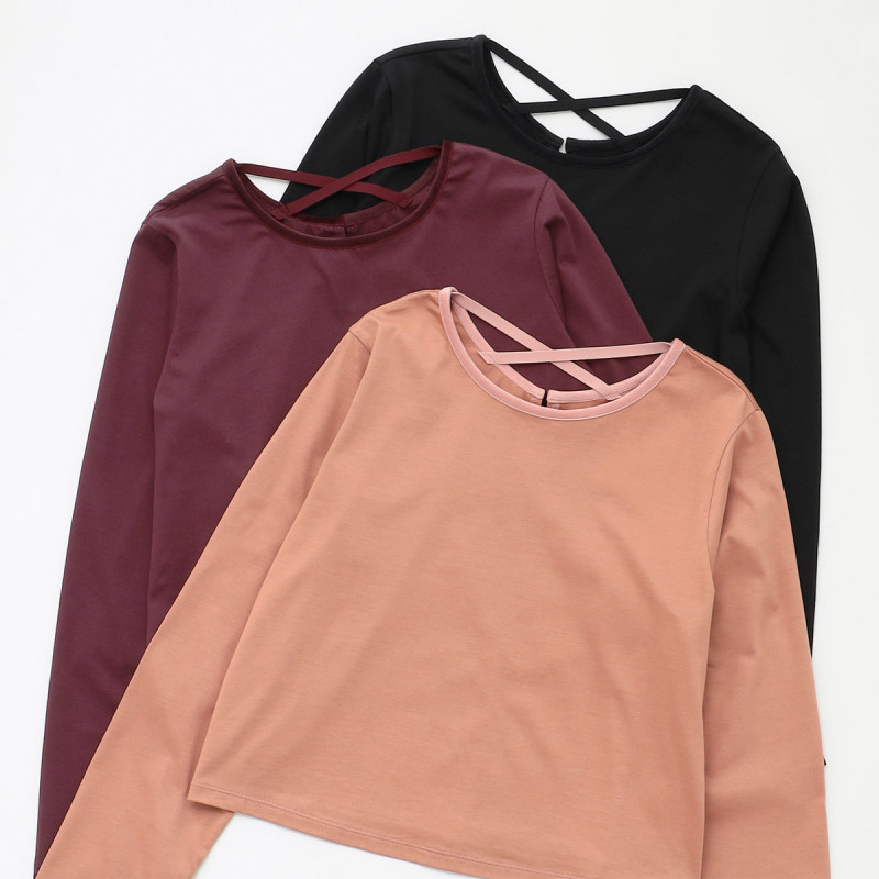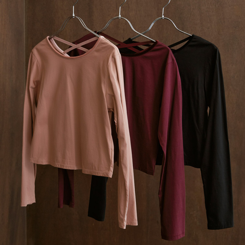 バッククロスリボンがデザインポイントで、後ろ姿もかわい印象に。